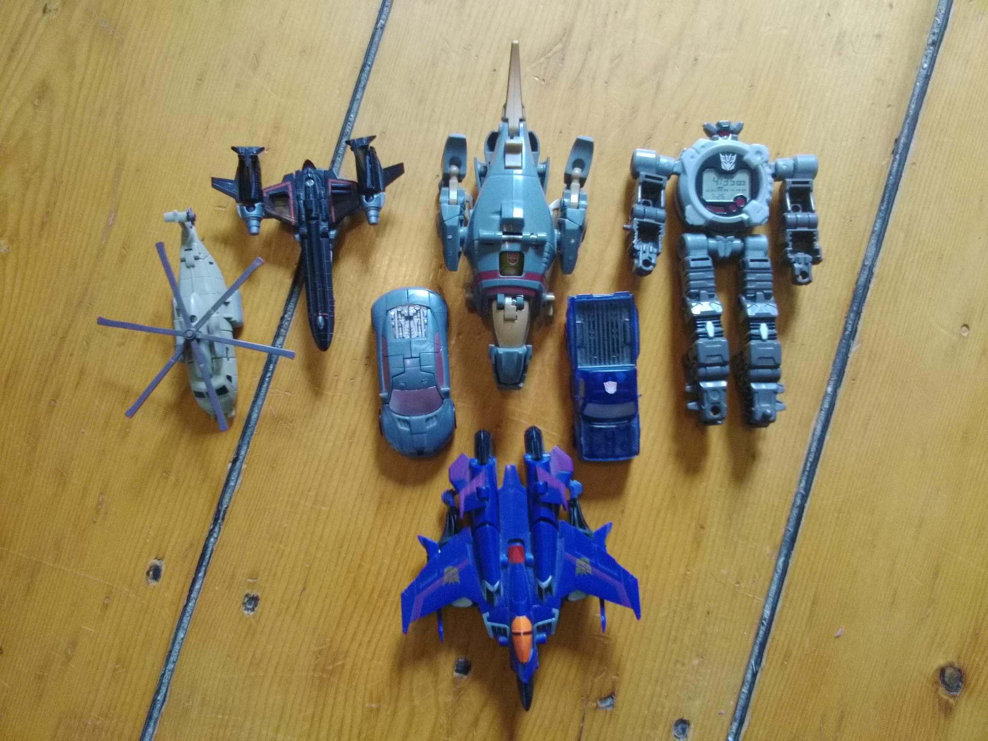 So I've decided to sell off some of my TF collection, among other things. All of these have been displayed, lightly played with, and are usually complete with instructions and the like. Some have their packaging, but none are sealed. -I only ship to the 48 states that are not Alaska and Hawaii -PayPal only. -Prices do NOT include shipping. -Feel free to PM me with any further questions. Transformers TFSS 2.0 Figures All figures were used only for display, so they're in like new condition. These were made-to-order, so they aren't the easiest thing to get on the aftermarket. Barricade SOLD Rewind and Eject - $65 Opened Transformers - $25 for the lot These are figures that are used, but I still have the packaging for. Can be shipped loose. Soundwave WILL be shipped loose, due to the bubble being in worse condition than I remembered. Beast Hunters Shockwave - SOLD Generations Blitzwing - $13 Megatron (Powerizer) - SOLD GDO Swerve - $10 Optimus Prime (Powerizer) - SOLD Beast Hunters Soundwave - $8 (shipped loose because of packaging condition) Loose Transformers All are complete unless said otherwise, and used to varying degrees. PM if you want specifics. First Edition Bumblebee - $10 Universe Tankor - $10 Universe Galvatron - $12 ROTF Soundwave - $8 ROTF Voyager Rachet - $10 ROTF Mixmaster - SOLD TFA dlx Optimus SOLD TFA Snarl (blue paint removed from eyes to make light piping work) - $8 TFA Prowl (very loose waist, could be tightened) - $8 HFTD red Rampage SOLD DOTM dlx Ratchet SOLD Animated Lockdown (tab between arms is broken, but it affects neither mode) - $10 Generations Blurr - SOLD '07 Movie Voyager Starscream (stress mark on wing) - $13 Universe Bruticus (very obscure, great alternative to Cybertron Scourge) - $15 PCC Crankcase w/ Destrons - $15 Custom Cannon Bunblebee (Base figure is from TRU 3-pack. Variations consist of desert-themed battle damage and a new head w/ mask deployed. I modded it into a convertible, which considerably slims down the backpack.) - $10 Generations Scourge (displayed only, like new) - $15 FoC Jazz (displayed only, like new) -$5 TFA Jetfire/Jetstorm - SOLD Megatron with Blastwave trailer (broken hand, otherwise complete) - $15 TFP Ultra Magnus (Cyberverse, weapon peg from other figure broken off in arm port) - $8 HA Backfire (complete, but driver not pictured) - $13 Cybertron Brushguard (key and missile Inc) - $5 Cybertron Scattorshot (loose elbows, complete) - $5 RoTF Tankor - $7 BH legion Bumblebee (like new) - $4 Small Figure Lot - $20 These are all figures that are heavily played with, so lots of loose joints and a couple broken tabs. Included are: -activators Grimlock (auto-transfom works fine, loose joints everywhere) -activators Thunder cracker (auto-transform works fine, broken tab on leg, loose tailfins and neck) -Midnighter XR4 (generally tight joints, but there's a broken tab on the leg) -RotF legends Jetfire (loose shoulders) -RotF legends Sideways (loose knees) -movie legends Desert Blackout (loose legs) -Spychanger Hoist (OK joints, but no gun) Hero Factory - $20 for the lot All are complete and in great condition with canisters/bags included. Rocka (Breakout ver.) - $10 Surge 2.0 - $6 Stormer 2.0 (no manual, can be downloaded off lego.com) - $6