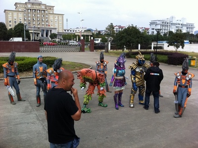 Chinese spelling: Jushen ZhanJiDui Japanese Katakana: Kyoshin Sengekitai 2012-06-06 UPDATE: A clearer photo of the robots surfaced from http://www.hero-material.jp/2012/05/post_f436.html This is a new toku filmed in China, schedualed to air next year. It's mostly an imitation of the Sentai (Power Rangers) series, featuring a team of 6 members and three giant robots (so far it seems). Also, except the actors, the production staff is the same as Armor Hero, including designers, diretors, stunts etc. The stunt director is Takanori Shibahara. http://wild-europe.com/takanori_shibahara-en-1 Then these are some sneak-out photos from Shibahara's and other actors' blog What do you think? Last edited by Tekmen; 06-06-2012 at 07:53 AM.. |