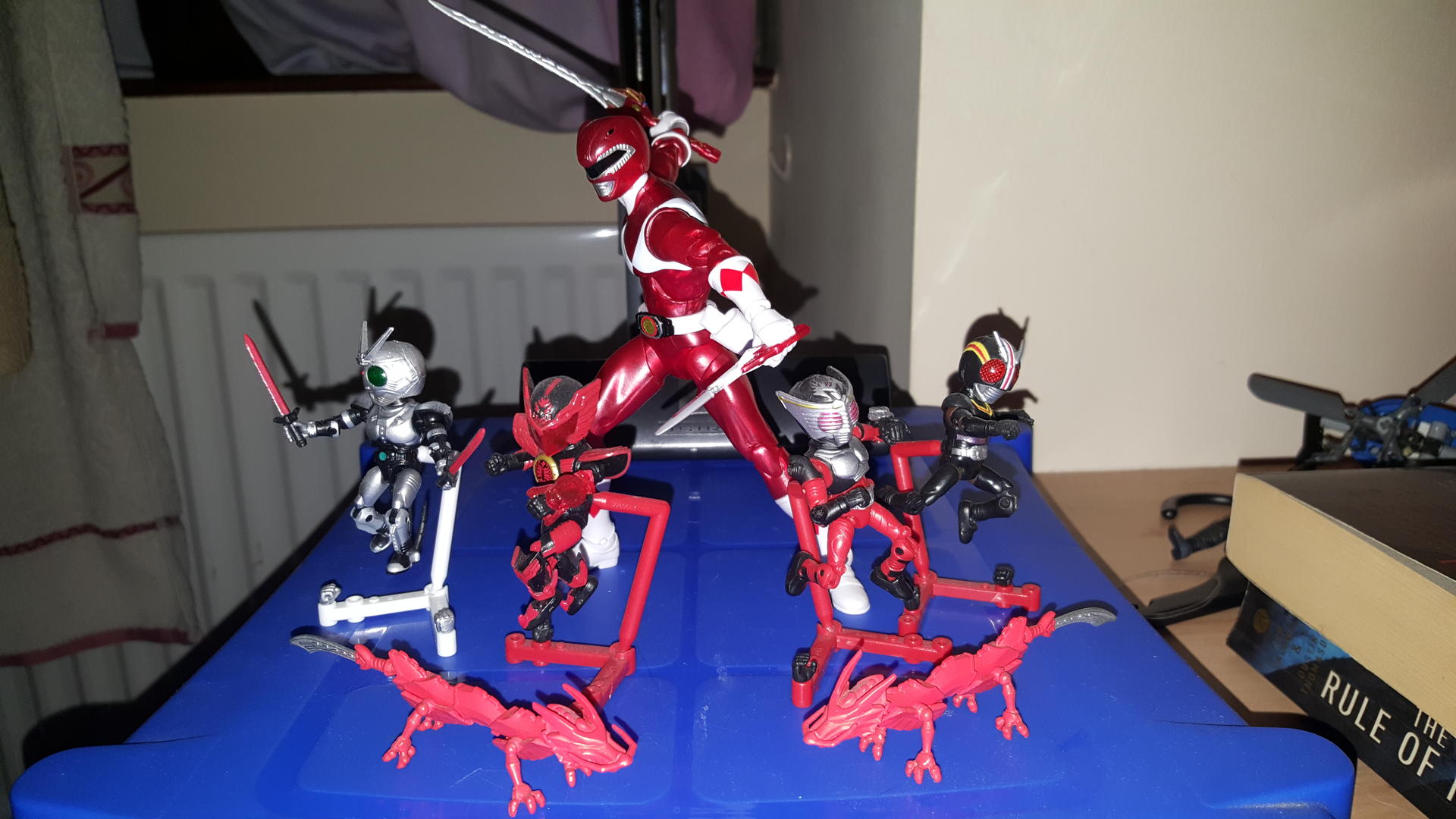 Cheers man. They are a discontinued kamen rider candy toy line, '66 action' kamen riders. Really wanted to collected them all. Got these guys for now, plus another Ryuki. Also want to collect the rest of MMPR team, but UK sucks for figure collecting in general...........