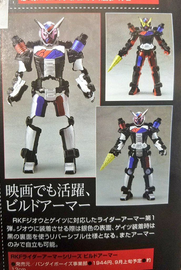 Seems like the RKF Version of the Build Armor time form will be nothing more than a hollow shell that you attach to other figures ala the Level 1 forms from Ex-aid's gimmick line. Due out next month in September for 1944 yen.