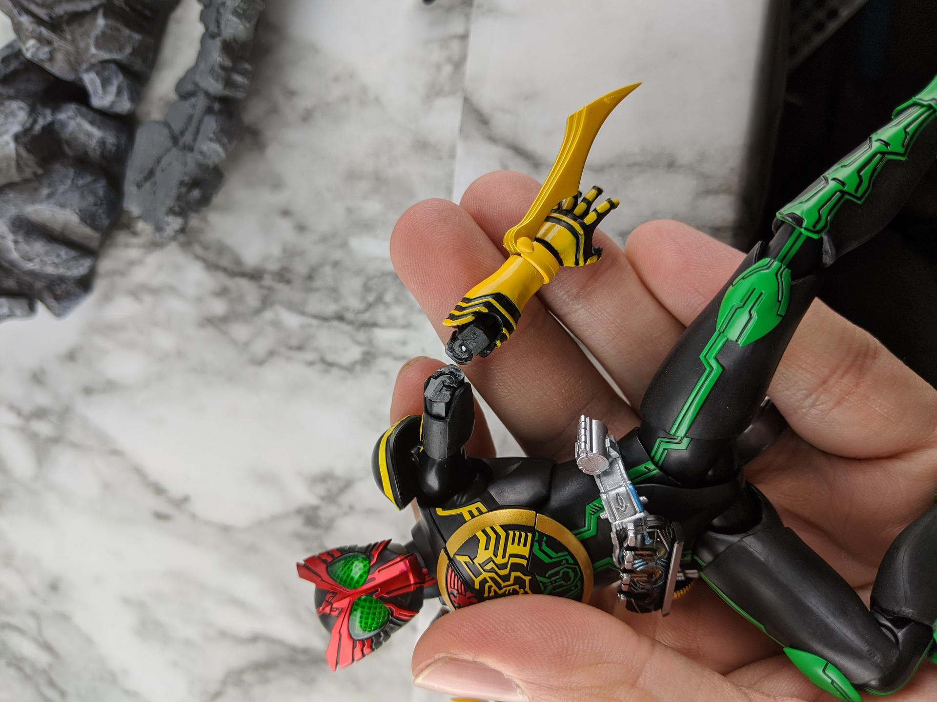 Oh, man, I'm sorry that happened to you! Reminds me of my original OOO Figuarts, only the broken part was the leg, moments after I removed it from the package. I was very relieved to replace it recently.