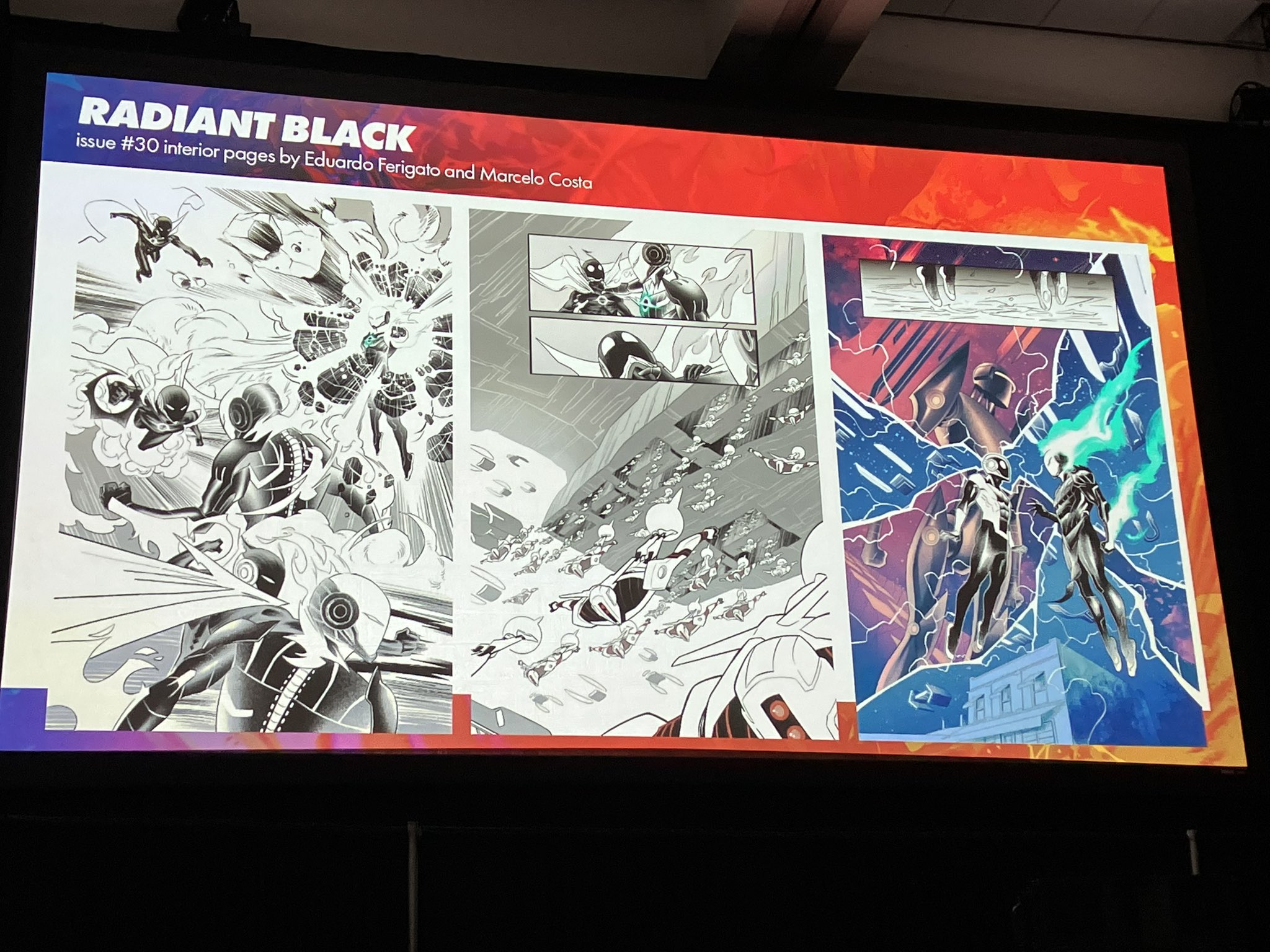 ... Radiant Black: Some previews for #30(.5), releasing late August RB Audiobook cast announcements include: Rider Strong as Nathan Burnett/Radiant Black (previously announced) Will Friedle as Marshall Ward/Radiant Black (also previously announced) Kim Rhodes as Mrs Burnett Loren Lester as Mr Burnett Todd Stashwick as <001> Melissa Navia as Radiant Pink Anne Yatco as Radiant Red Troy Baker as Shift Rogue Sun: Previews for #21 Covers for #22-24 Inferno Girl Red: Preview for Book Two COWL: Preview for COWL 1964 #1 Covers for #2-4 No/One: Following on from #10, an in-universe documentary has been announced as the final chapter to the story, more details here https://www.thewrap.com/image-comic-...ilm-exclusive/ And a recording of the announcement https://x.com/NickangerPNG/status/1816914890893984235 And that's mostly us. |