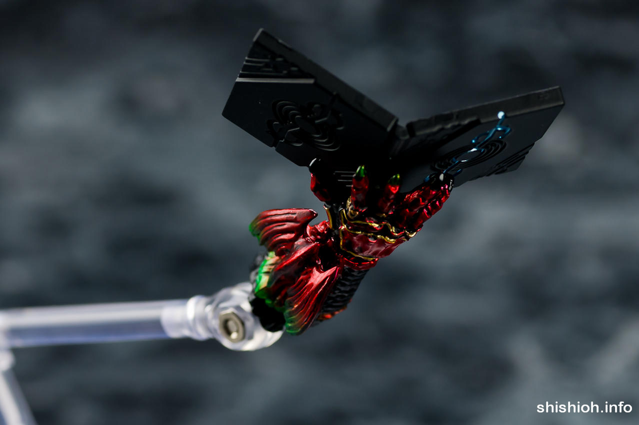 From Toy Reviwer Shishioh, we have some extensive in hand photos of the S.I.C. OOO Effect Set which adds a swappable TaToBa Greed head for the S.I.C. TaToBa figure, and Eiji’s partner in Medals collecting: Ankh!