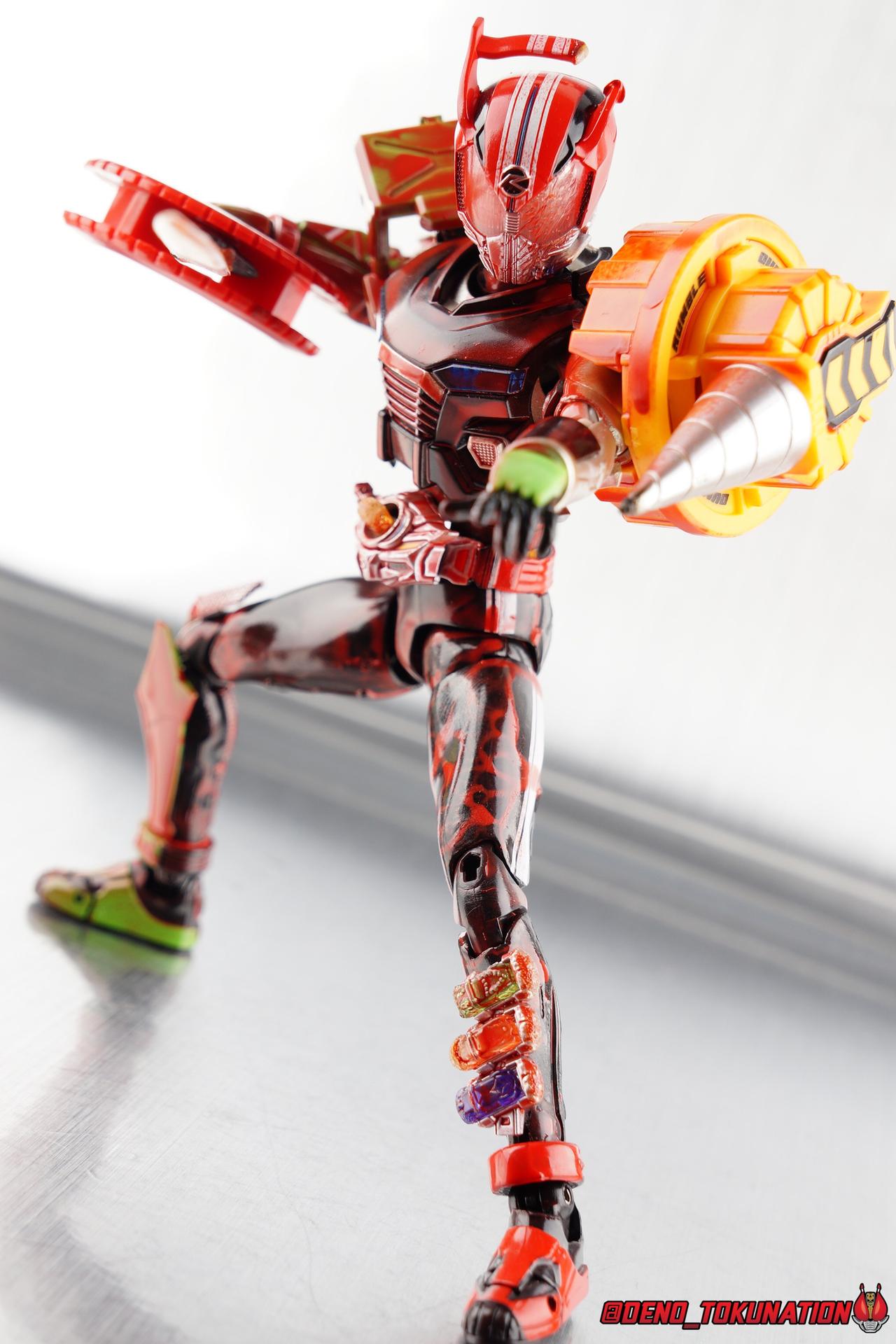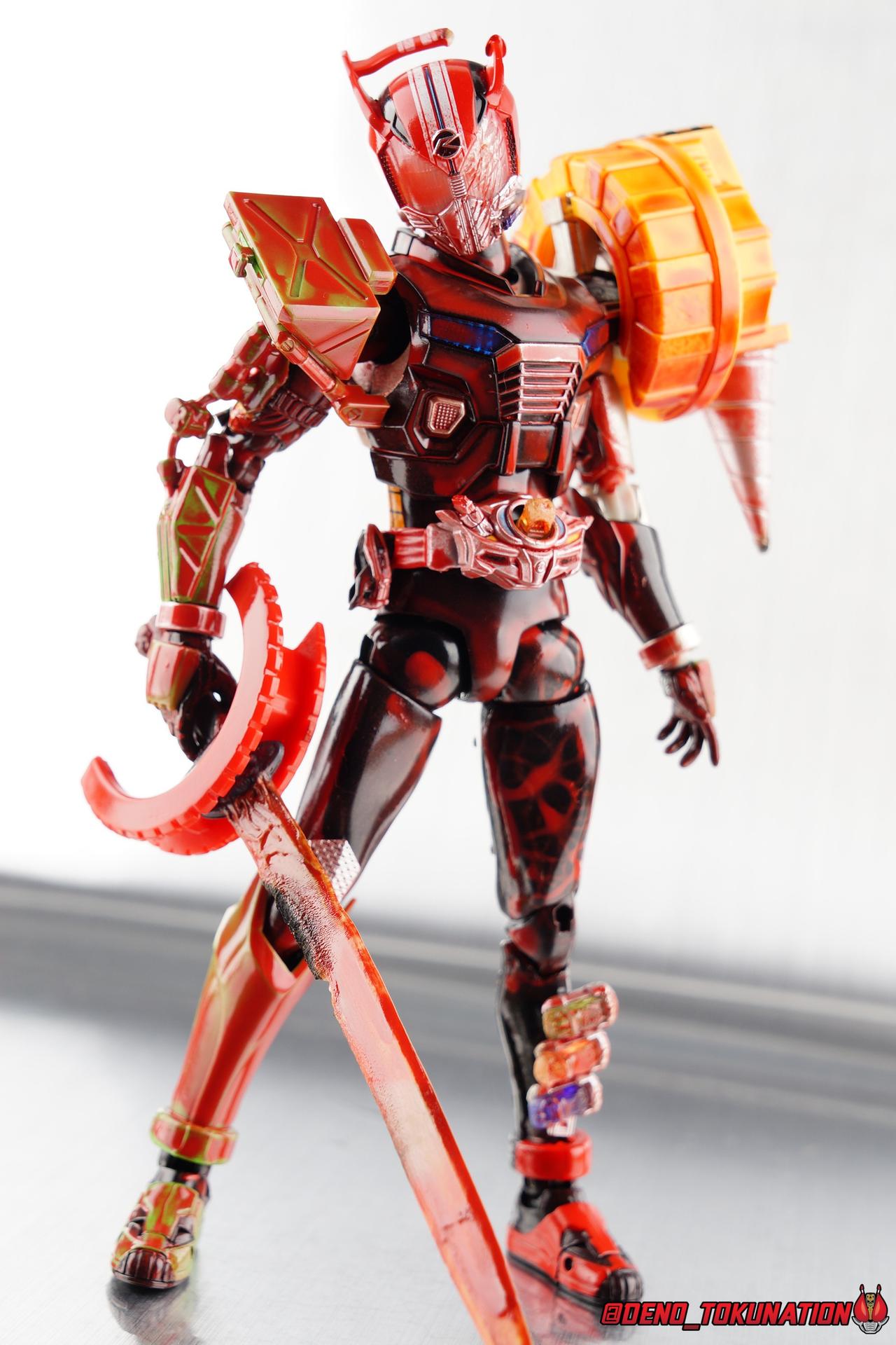 I had been in the middle of building my own Kamen Rider Heart Type Speed/Wild/Technic, the form he briefly and unsuccessfully used in the Heart V-Cinema before attaining his Type Miracle form. It's one of those little pet side projects I'd intended to complete forever, so acquiring an extra set of Types Speed Wild & Technic finally happened and I got to work. When finished however, I had a ton of spare parts, some useable, most not. My obsession with finding a way to use these parts in some meaningful way resulted in the custom you see below. This figure features the right leg & arm as well as the left hand of Type Technic, the left leg of Type Speed with the shin and knee armor removed. In place of the shin is a Shift Car holster. The lower abdomen comes from Type Speed with Type Wild's Driver Driver attached. The Mr Belt readout has been removed and a Rumble Dump Shift Car permanently affixed inside. My story behind it being that Mr. Belt was removed to take away any sense of justice this rider had left. The Shift Brace has been moved to the right hip as well, it's placement and the Shift Car holster were just aesthetic choices more than thematic ones on my part. But they play into the broken nature of this rider. The upper boy comes from Type Wild as does the left arm, which is actually Wild's right arm reversed with the Rumble Dump tire attached. The head of course comes from Type Speed though I've added some mangled details to the visor. The sword he's holding actually came from a very old McFarlane Onimusha figure and I attached half a Fire Braver Tire to it to create the Tire Sword. A nice derivation of Drive's Handle Sword, just a bit more crude. After fully building it and trying to create a more uniform color scheme, while still keeping in line with the scattered violent nature of an Another Rider, I applied some red enamel to most of the body. As it bonded to the plastic it actually formed into some really cool patterns, especially on the left leg. Oddly enough though it actually make the figure look like it'd been through a literal blood bath as well! Though not intentional this dirtied color scheme works pretty well in my opinion. I also applied some burn marks to the Tire Sword, head, shoulder drill tip, and shift car holster. My original intent with cobbling this thing together was to make my own take on what Another Drive from Kamen Rider Zi-O could potentially look like. After sharing this custom on twitter I got some great suggestions about other names for this thing. I even like the idea that this could be the actual Drive, after using a shift car based on Another Drive. For now, it's Another Drive. But please vote in the poll attached to this thread to help me determine what I'll call this thing after we've officially seen Another Drive!