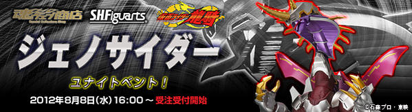 After being revealed a month or so ago, the long awaited SH Figuarts Genocider has been listed on Bandai's Tamashii webstore! This huge beast from Kamen Rider Ryuki is the combination of contract monsters Venosnaker, EvilDiver and Metalgelas. Also listed as included with the set are "three dedicated pedastal"...could this be confirmation that stands for the monsters' three riders will be included?