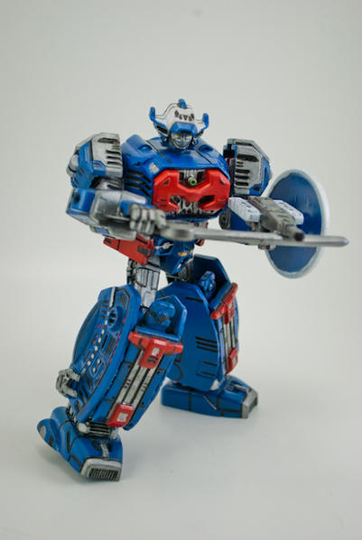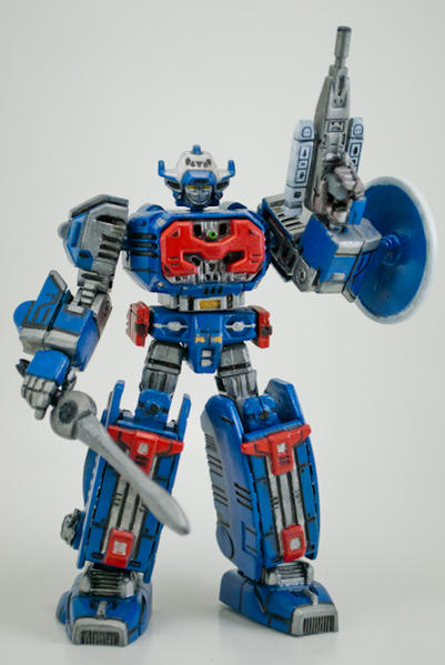 The Astro Megazord has 18 points of articulation and comes with it's sword, shield, and blaster. It stands around 5.5 inches tall, right in scale with SRCs but can be larger than other retrofires. The Astro Megazord was made primarily from a 5' Astro Megazord from the Action Zord subline and a classics 2-pack Optimus Prime. It was painted with citadel brand acrylics and detailed with a gundam marker. Last edited by conundrum; 02-03-2013 at 10:28 AM.. |