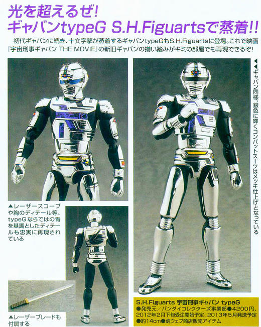 Thanks to Tendou Toys News Blog we've received a new image of S.H. Figuarts Space Sheriff Gavan Type G! Like his predecessor Gavan Type G will be released as a Tamashii Web Exclusive. Scheduled for release in May 2013 Gavan Type G will run you 4200 yen. Don't have a middleman lined up for this bad boy yet? Then stop on in and visit Tokunations' resident middleman, Sentai Tamashii, and his Web Exclusive Middleman Thread to secure yours!