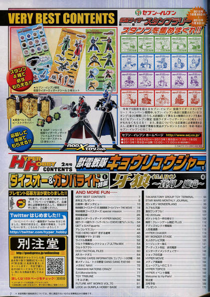 We bring you more scans from the February 2013 issue of Hyper Hobby magazine courtesy of modxtoy, this time covering a range of Kamen Rider news and products!