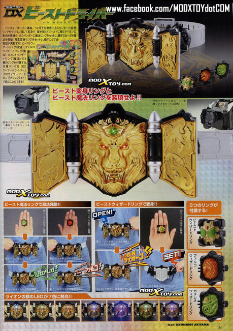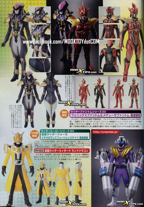 On show in the magazine are images of current rider Kamen Rider Wizard and the series' incoming second rider Kamen Rider Beast, as well as shots of villains Medusa and Phoenix and stills from the recently released Kamen Rider × Kamen Rider Wizard & Fourze: Movie War Ultimatum. On the toy side of things, we have images of SH Figuarts Kamen Rider Wizard, the Kamen Rider Beast driver and roleplay toys, rings, vinyl toys and much more! Check out the full sized images after the jump!