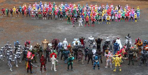 Kamen Rider X Super Sentai: The Superhero War is going for the Guinness World Record, The film features 50 riders, 173 Rangers, 97 monsters, and 165 other combatabts. it would be the most amount of suit actors in history.