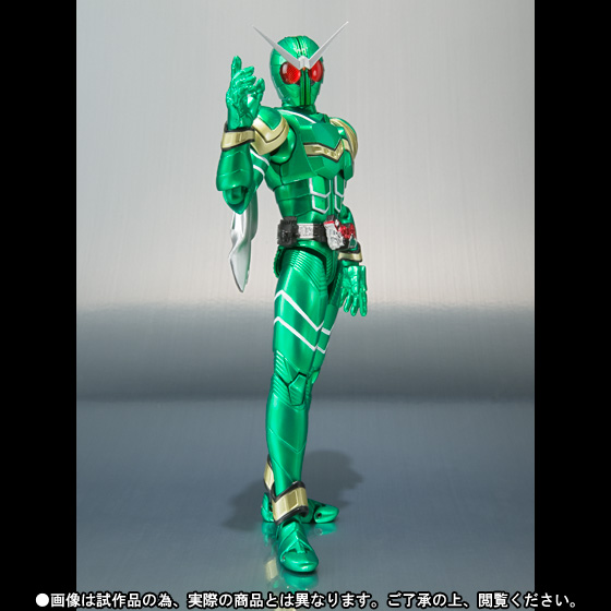 Recently announced in the latest issue of FigureOh, comes the latest Kamen Rider W figuart, Kamen Rider Cyclone! This form is when Philip uses the lost driver in the novel,Kamen Rider W: Z wo Hikitsugu Mono!
