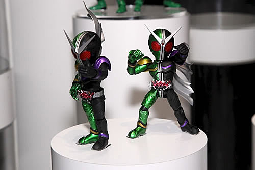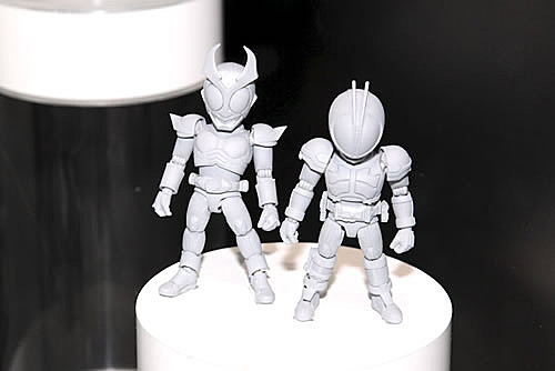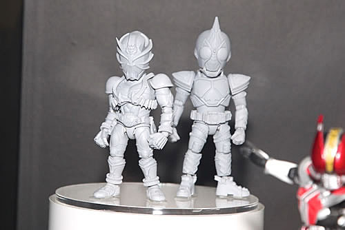 The Cybergundam Blog has posted new images of Rider Deforme figures on display overseas. Shown are some full color samples, as well as prototypes for upcoming figures. Some of the rider series represented include:
