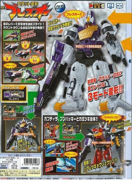 Not to be outdone by the reveal of Tobaspino we've received yet another set of Kyoryuger toy catalougue scans! This time we have our very first look at Zyudenryu #9 Pleson in it's semi-dino/rocket ship mode, as well as it's own robot mode PlesOh!