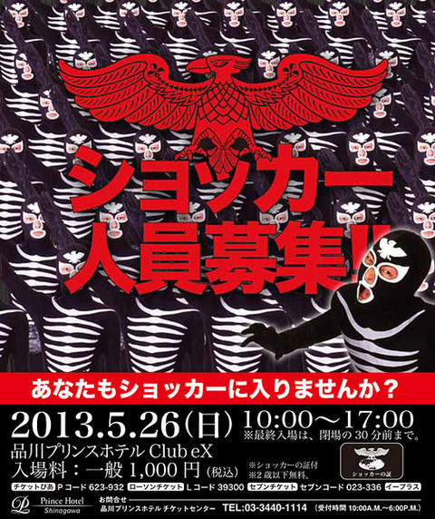 On May 26th, Toei announced they will be holding a special recruitment event open to the public in Tokyo’s Shinagawa Prince Hotel. Admission will be 1000 yen and will be from 10:00 AM and 5:00 am, and attendees will leave with a present which will act as prove that you are a member of Shocker. While the details on the audition itself remain a mystery, we do know that Shocker is looking for three specific types of characters: Shocker Fighter A: an average guy who’s daily routine includes collection information on the Internet. Shoker Fighter B: A tall and skinny Internet addict with the nickname “Bean sprout” whom admires Bill Gates. and Shocker Fighter C: A short pudgy guy and self proclaimed Gourmet hunter who’s been thinking about dieting and enjoys making terrible puns. A special promotional video has for this event has been released, in addition the main Website has also opened. |