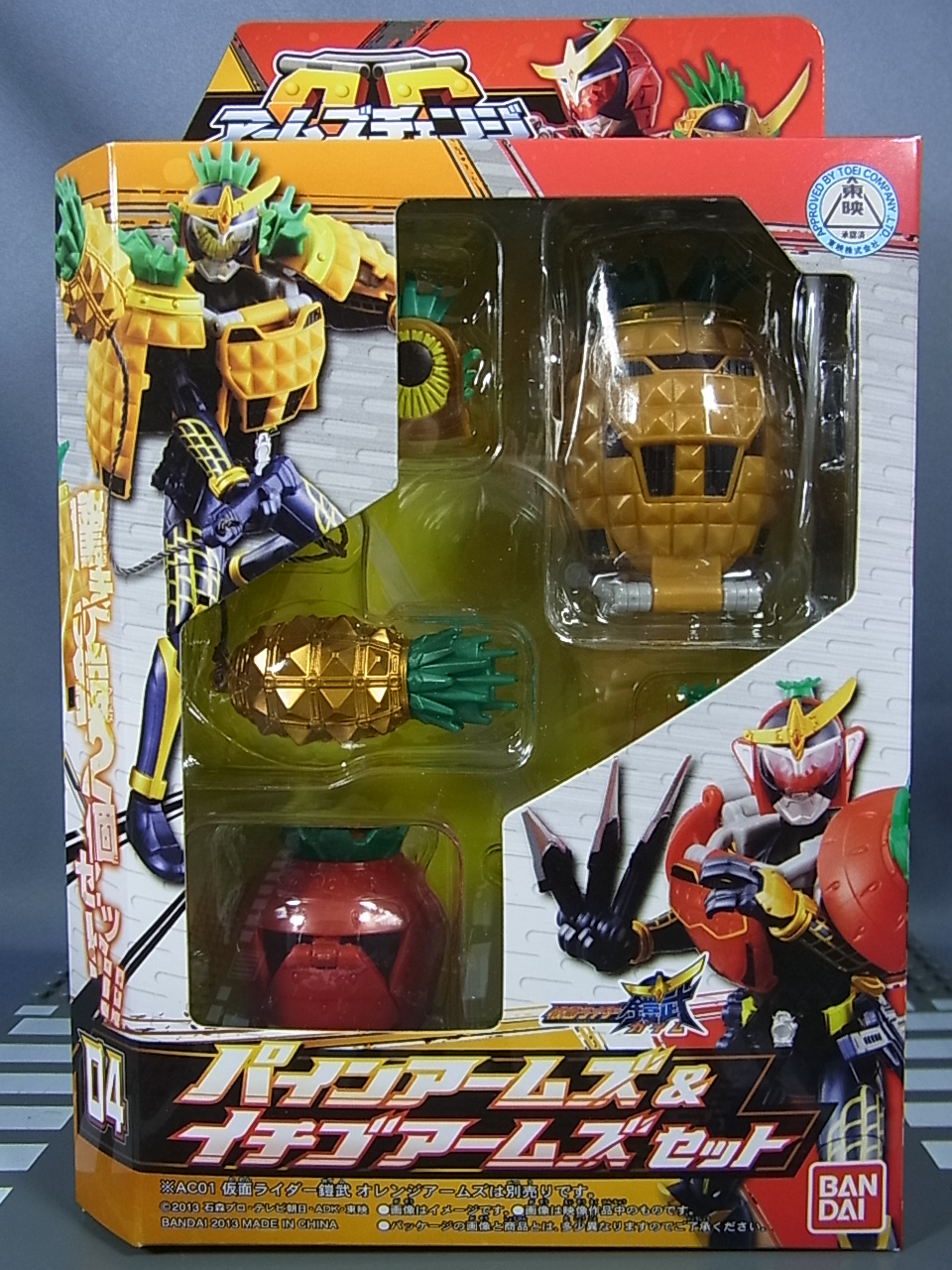 Just a few days ago we showed you official images of the AC04 Strawberry and Pine Arms set for the Kamen Rider Gaim Arms Change line. Now we have in-hand images thanks to the Higekuma Toy Blog! In addition to the latest arms, there's also out-of-package images of AC03 Kamen Rider Ryugen!
