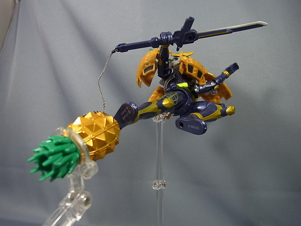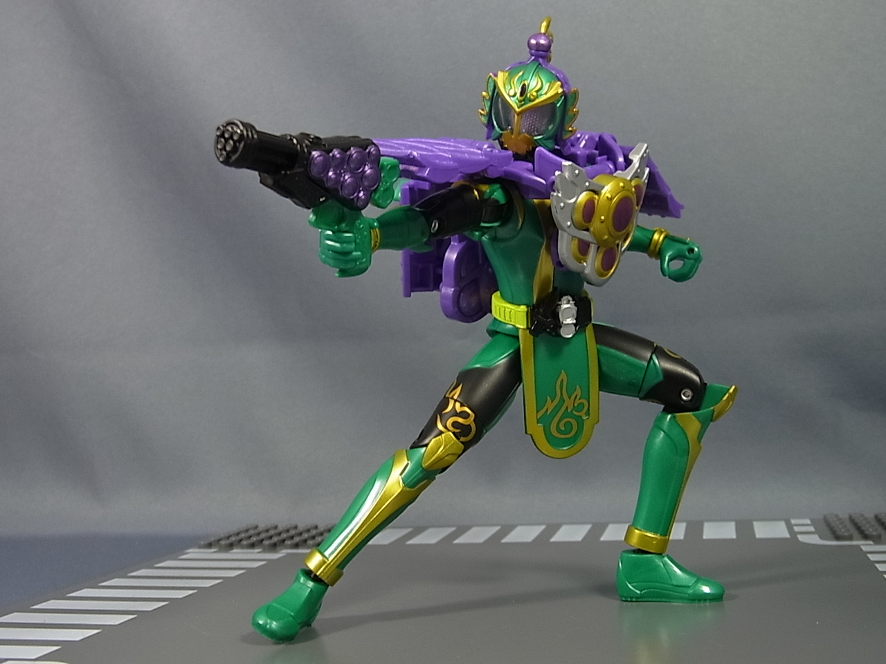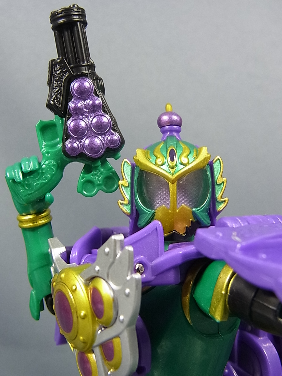 Ryugen looks beautiful alone without his Armor. The yellow, the green, the Gi motif of his under-armor, it's all perfect. Grape-Kun is quickly becoming my favorite of these awesomes.