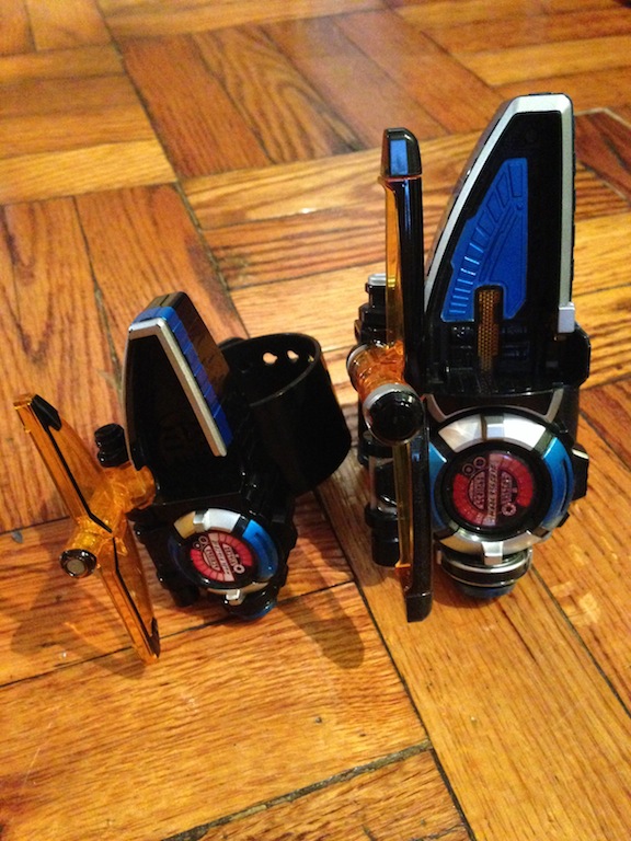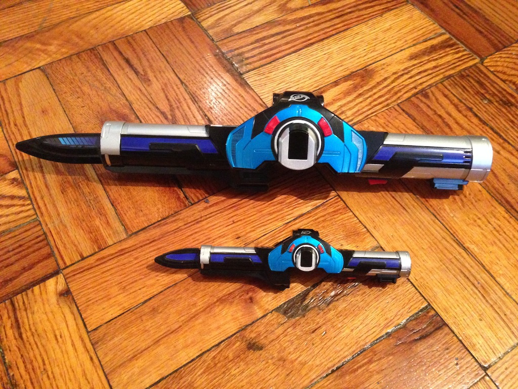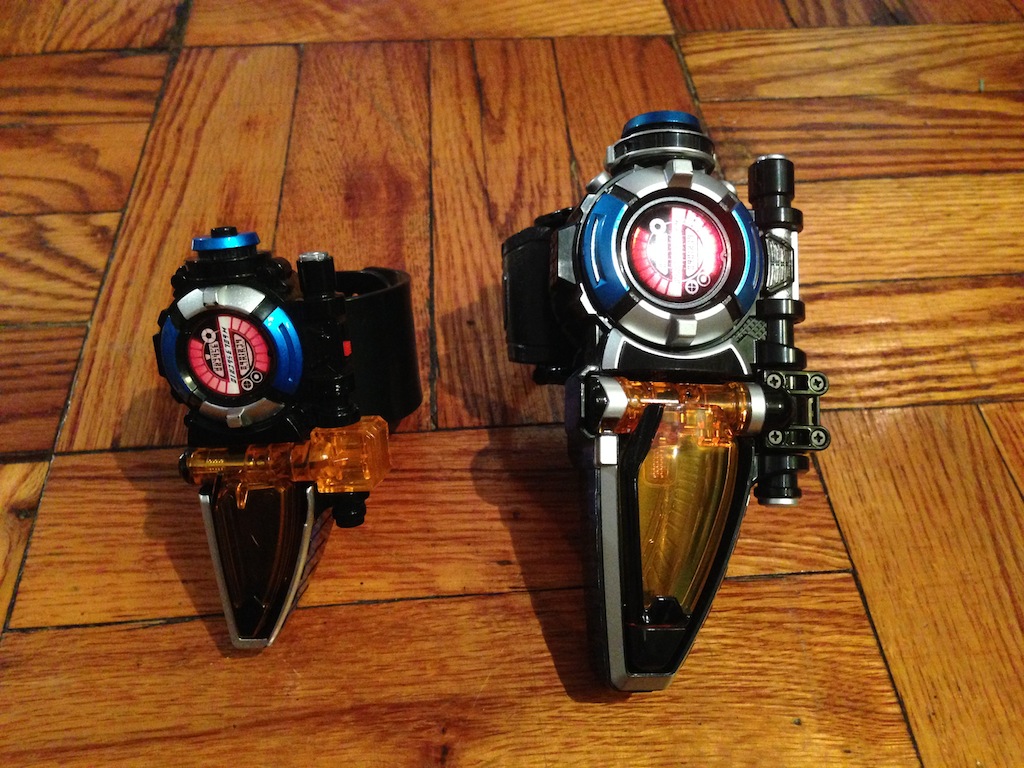 So here they are, the Narikiri set versus the DX set, you can see the size is a huge difference. the last two picture are actually the Gashapon version versus the Narikiri version, the gashapon version actually has a longer blade.