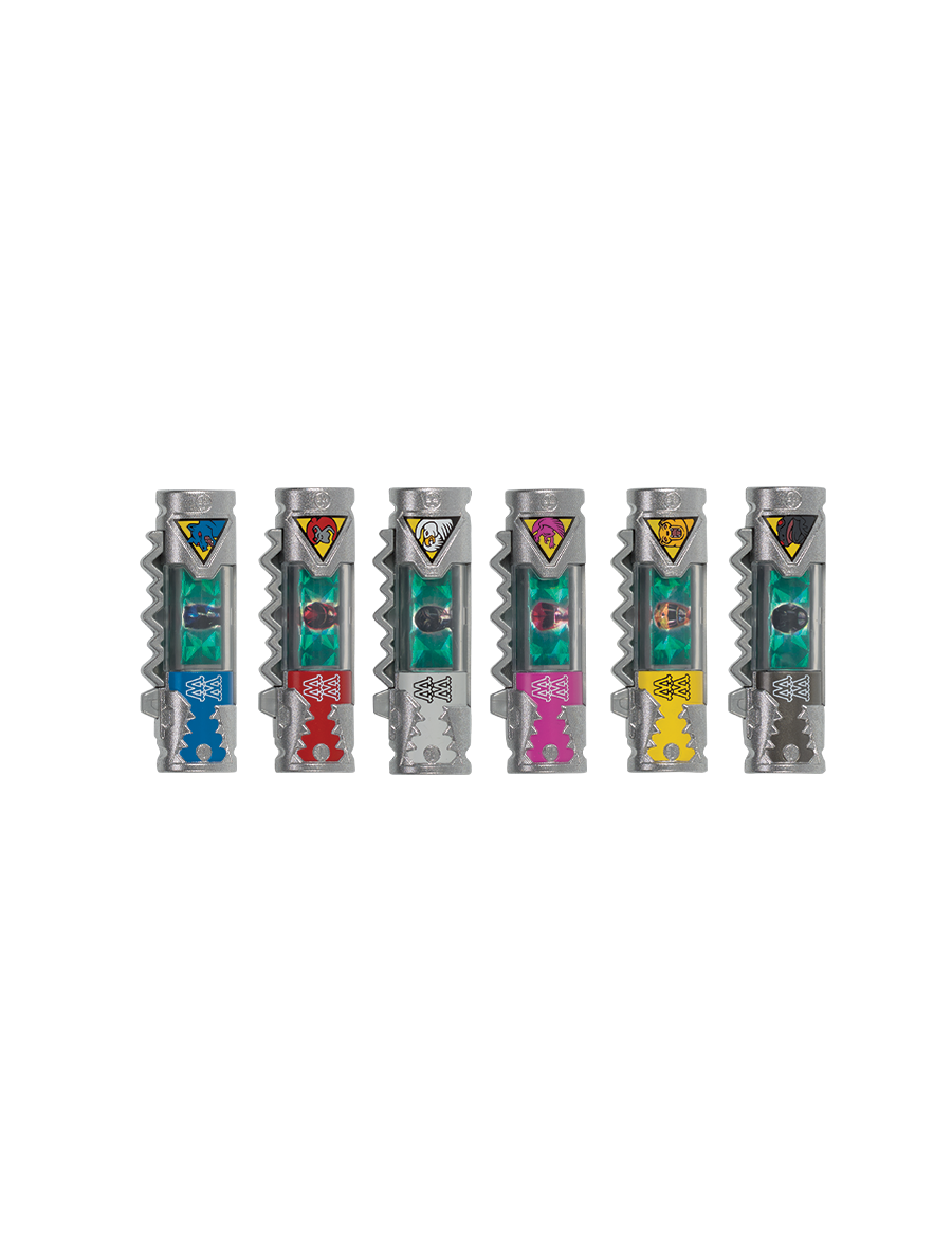 They also feature images of the Movie Ranger helmets in them. They also are silver rather than gold like the TV ranger chargers.