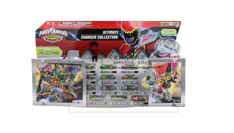 There are Dino Chargers 1-23 in there for sure. I saw the Carnival and Victory chargers, so then it's 25. It probably has Maximum, so 26. Then 27 is probably Spino. There's a Spino Zord so why not?