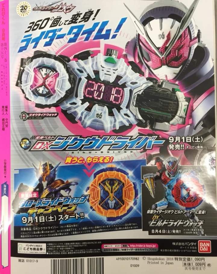 So in case you are wondering what these are, The red bottle is the Super Sentai Full Bottle, the blue one is the Kamen Rider Full Bottle. Super Sentai Full Bottle can be obtained by buying this particular issue of Televi-kun and Kamen Rider Full Bottle can be obtained by buying the Super Televi-kun Zi-O & Build issue. Inserting the Sentai bottle will give you the sound "Super Sentai!" Inserting the Kamen Rider bottle right after that will give you "Kamen Rider! Best match!" After the are you ready sound, it will say "Nichiasa saikou(Sunday morning is the best)! Super Hero Time! Yay!" For those still not unfamiliar Nichiasa is a shortened form of Nichiyobi Asa, which means Sunday morning, the time period sentai and rider shows air in Japan.