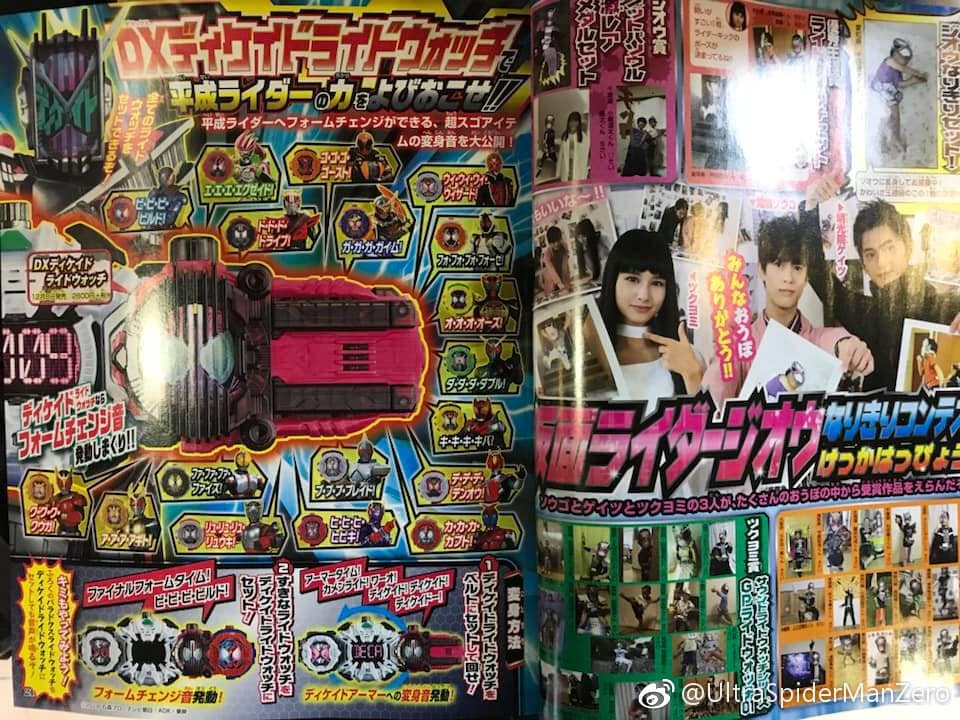 - Decade Ride Watch harnesses the power of Kamen Rider Decade - Decade Armor allows Zi-O to simultaneously use other rider powers by attaching an additional ride watch to the Decade Ride Watch - W Armor allows Zi-O to hurl swift kick and punch moves towards the enemy - Ride Heisaber is a sword exclusive to Decade Armor, attaching a ride watch to it will boost its sharpness - Another Kuuga will be a giant foe - Tsukasa for unknown reasons has allied with the Timejackers, and will be operating with Aura(new Timejacker I assume)