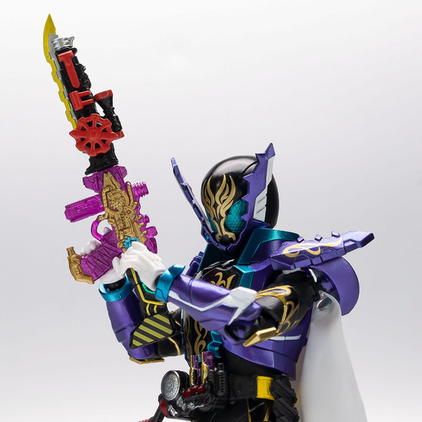 Man, them jaws remind me of Gatack. Looking at it again it looks like they fused Gatack and Kiva Emperor finishing it off with Sasword's color scheme and gold markings.