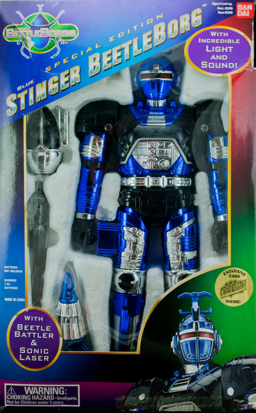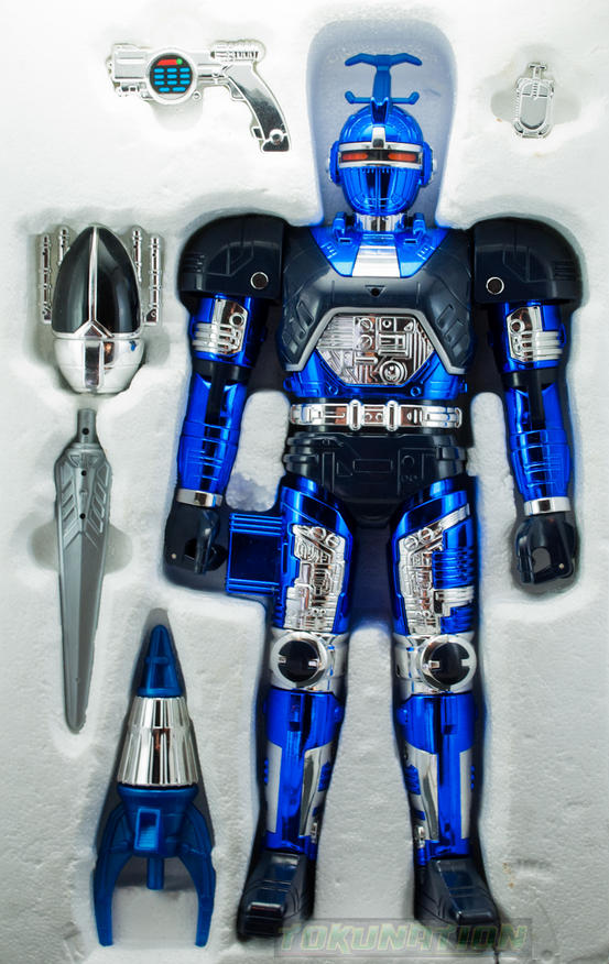 It's a toku throwback with a gallery of the Special Edition Blue Stinger Beetleborg from Bandai's Big Bad Beetleborgs toy line! This super-sized figure is an import of the Dx Blue Beet figure from the Juukou B-Fighter toy line. Few images of the Japanese figure exist, but there seems to be little difference between the B-Fighter and Beetleborg releases. Blue Stinger stands at 12 inches tall and has 21 points of articulation. The figure possesses switch operated lights and sounds that run on 2 AA batteries. An array of accessories are included with Blue Stinger including a Beetle Bonder, Sonic Laser, Beetle Battler, the Stinger Blade attachment, and the Stinger Drill attachment. Check out the 25 image gallery after the jump and see the Blue Stinger/Blue Beet suit in action again during Super Hero Taisen Z! Want TokuNation.com updates on the go? "Like" us on Facebook and follow us @tokunation on Twitter!! Would you like to see more Beetleborg/B-Fighter galleries in the future? Let us know in the comments! Last edited by conundrum; 07-08-2013 at 08:57 PM.. |