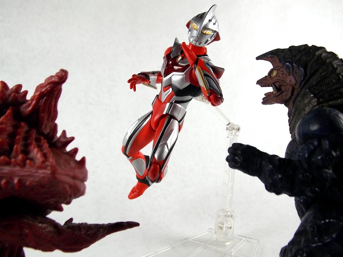 If you ever wondered why Ultra-Acts were larger than SH Figuarts, that's your reason. They scale really well with Bandai's long-lived line of vinyl Kaiju. Golza and Gan-Q would have made great Nexus monsters!