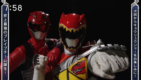 And with the end of one sentai we also see the begining of the next. The now traditional passing of the torch scene, begun with Dekaranger, has Red Buster giving his approval to Kyoryu Red! Next week tune in with Tokunation.com to your favorite fan sub groups and see the 1st episode of Zyuden Sentai Kyoryuger entitled, Brave 1: "He's Here! The bright red king!" Check out this video clip featuring the latest Kyoryuger promo and the torch passing scene!