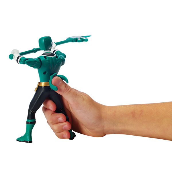 The Power Rangers Battle Morphin Figure is ready to protect earth from evil! Keep villains away by unlocking a cool “morph” feature using a joy stick featured on the back of the figure. Utilizing cool toy technology this superhero is posed with unique battle gear ready for training or battle. Place your thumb on the back of the figure in the joy stick dial and wield the Ranger’s weapon with complete control in any direction! As seen in the TV series, this weapon action enables the Rangers to protect earth, and now you can practice training moves with your own Ranger! Available in 4 Ranger colors this Fall