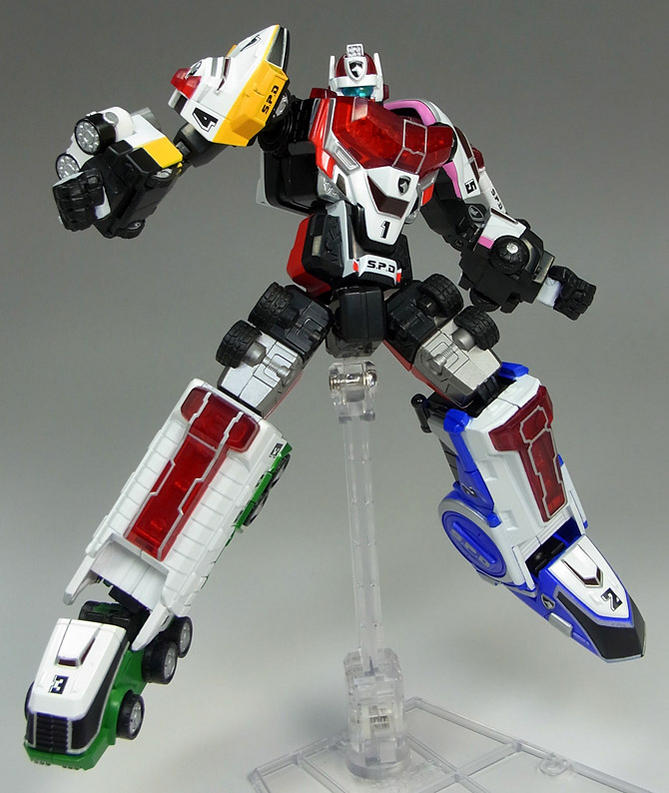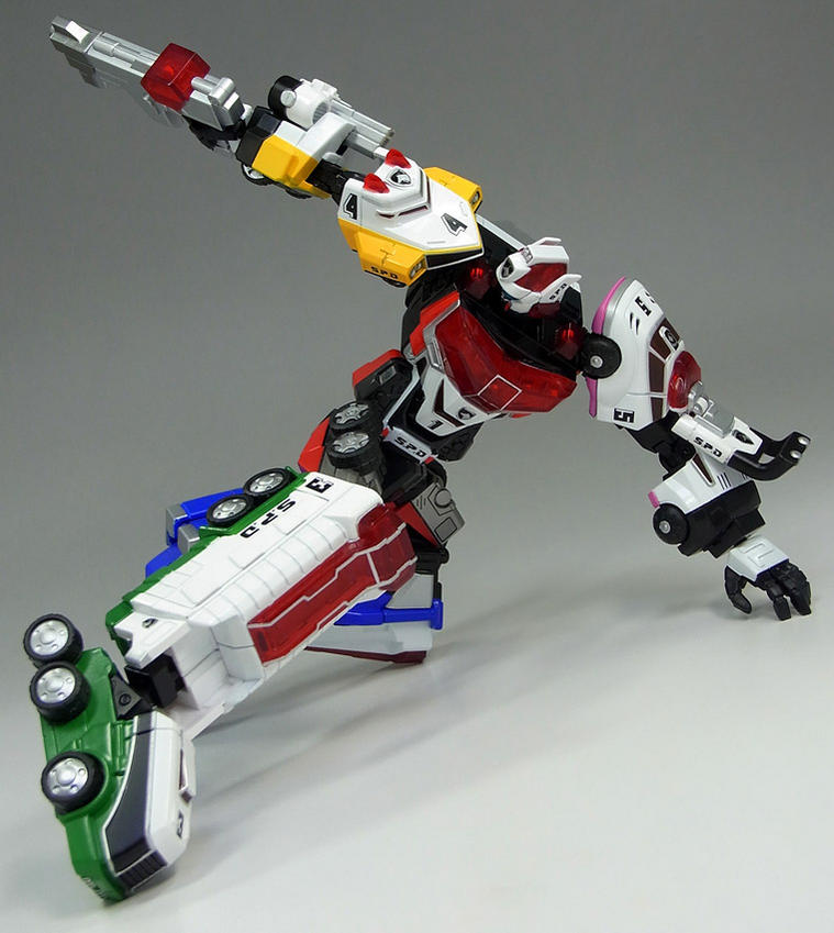 Couldn't wait any longer to see more SRC Dekaranger Robo? Thanks to Gamu Toys you can check out new images of the latest Super Robot Chogokin release! Also shown are the swappable parts which can be used on SRC GokaiOh! In addition, some of the images show the separate Boost Effect parts in use. We've mirrored some of the images, which you can check out after the jump!