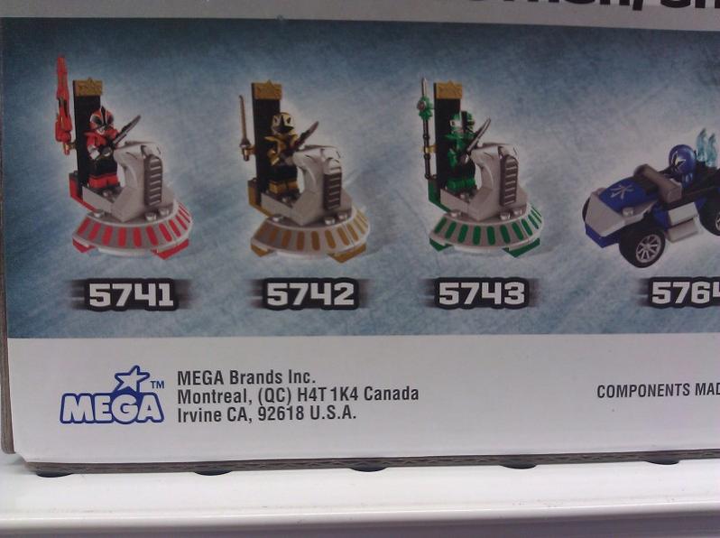 Just in time for the holidays, the Mega Bloks Power Rangers Samurai construction sets have been sighted at Toys R Us! Yours truly spotted them earlier today. The Samurai Megazord is fully articulated and can be built in 3 different modes. Also sighted were a Red Samurai Ranger VS Deker set, and 3 separate zord sets(red, blue, and yellow). The 3 zord sets can be built as their animal modes or a vehicular battle mode.