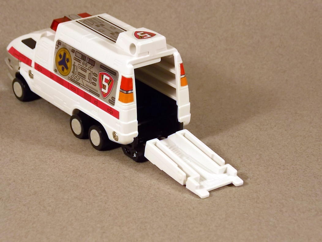 Continuing Tokunation's look back at Power Ranger Lightspeed Rescue is our latest gallery from the series. This time we're taking a look at the DX Lightspeed Megazord or the Victory Robo for GoGoV fans! Formed by 5 basic rescue vehicles the Lightspeed Megazord even has a mid transformation called Hydro Mode (Victory Walker) composed of Hydro Rescue Two, Haz Rescue Four, and Med Rescue Five. And don't forget those extending ladder gatlling punches either! This is definitely a must own!