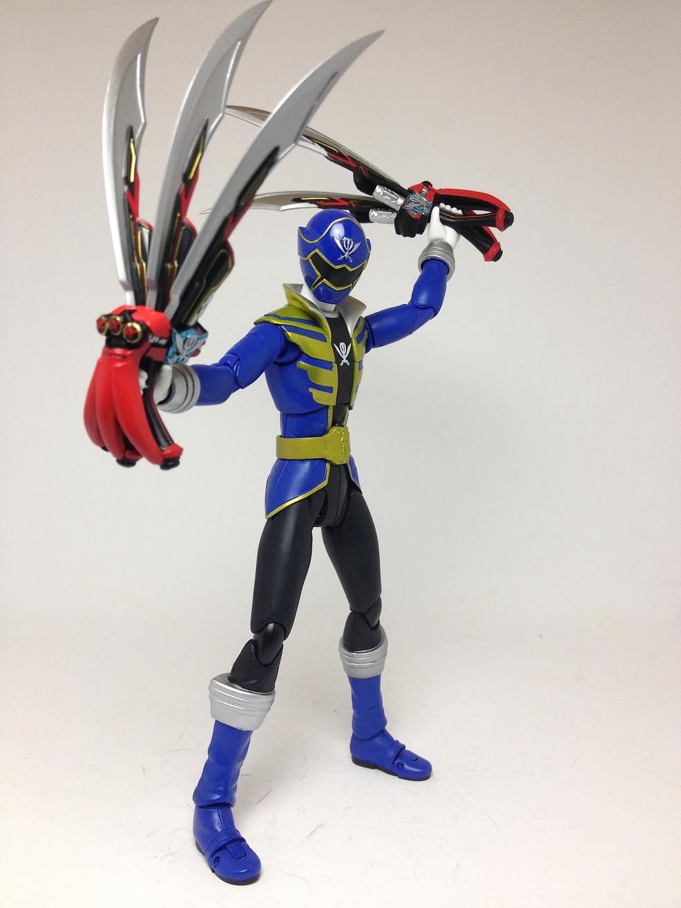 Armed with his blades, this member of the 35 Super Sentai, Kaizoku Sentai Gokaiger, makes his way into our galleries. This time, it's S.H. Figuarts Gokai Blue!