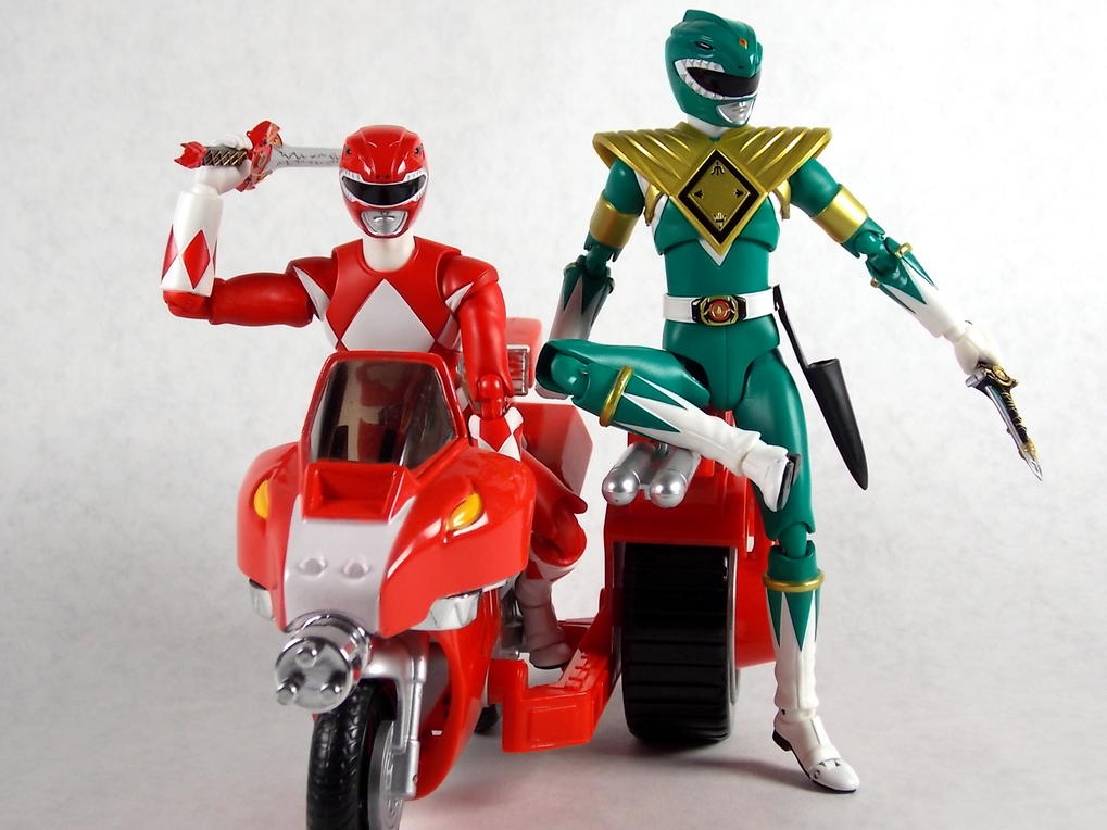 Known as Road Saurers in Kyoryu Sentai Zyuranger, the MMPR Battle Bikes are fun little vehicles which included full decal sheets and simplistic 4" ranger figures to drive them. While the figures themselves are nothing compared to today's standard, S.H. Figuarts, the bikes themselves actually scale pretty well with SHF's. The original Zyuranger releases of these vehicles, like many vehicles from early Hesei Sentai, tend to be hard to find and pricey. These US release are a great and pretty inexpensive alternative! Want TokuNation.com updates on the go? "Like" us on Facebook and follow us @tokunation on Twitter!!