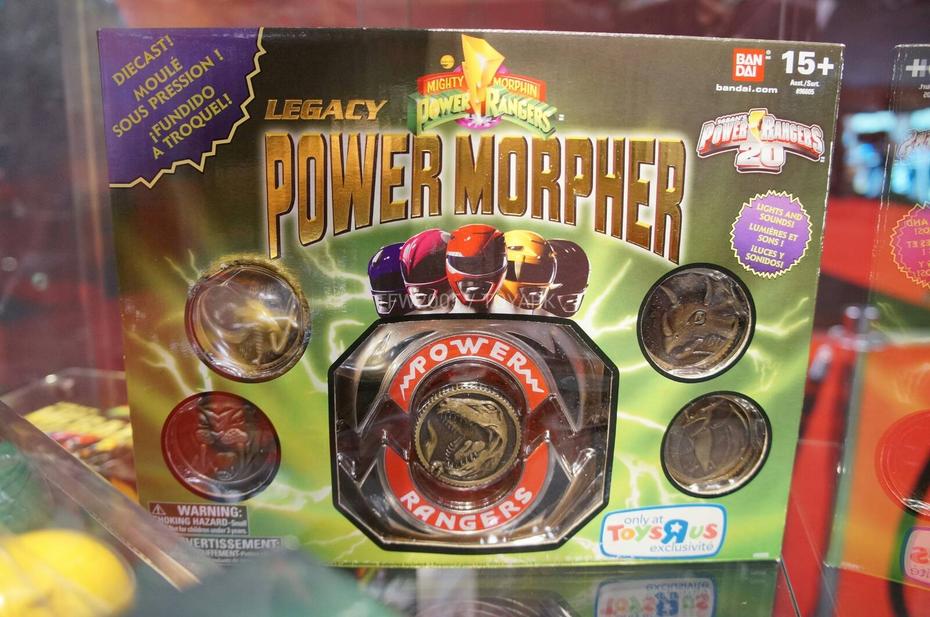 - Legendary Morpher & Ranger Key Assortments - 4" & 6" Classic and Megaforce Ranger figures - Legacy Dragonzord in box - Jumbo Sized Legacy Megazord - Legacy Dragon Dagger! - Super Megaforce Ranger Gear and Weapons - Legacy Mask Collection - Legacy Morpher - Several DX megazord components are also on display including US versions of Gaolion and Patstriker! It would also appear that Bandai is creating more vehciles which homage other Ranger seasons to upgrade the legendary megazord. Notice the Super Megaforce Red riding a Red Zeo Battlezord vehicle? And perhaps the biggest news so far. The SDCC 2013 Gold Legacy Morpher exclusive, featuring both Green & White Ranger Power Coins, will be available at Toys R Us!!