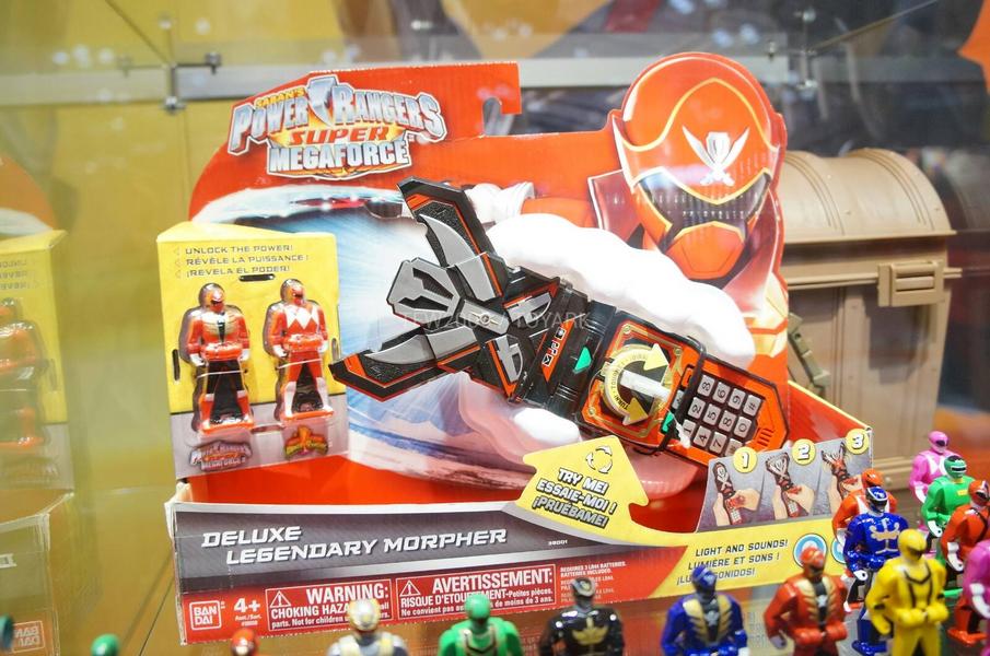 - Legendary Morpher & Ranger Key Assortments - 4" & 6" Classic and Megaforce Ranger figures - Legacy Dragonzord in box - Jumbo Sized Legacy Megazord - Legacy Dragon Dagger! - Super Megaforce Ranger Gear and Weapons - Legacy Mask Collection - Legacy Morpher - Several DX megazord components are also on display including US versions of Gaolion and Patstriker! It would also appear that Bandai is creating more vehciles which homage other Ranger seasons to upgrade the legendary megazord. Notice the Super Megaforce Red riding a Red Zeo Battlezord vehicle? And perhaps the biggest news so far. The SDCC 2013 Gold Legacy Morpher exclusive, featuring both Green & White Ranger Power Coins, will be available at Toys R Us!!