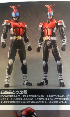 Kamen Rider kabuto was one of the first Heisei Riders to be released in the line, and sometime ago it was announced that he will be receiving a new Renewal figure. Recent magazine scans previewed this figure, comparing the old with the new. The figure on the left is the 2.0 release while the toy on the right is the one that's currently out. Further release Details TBa. Last edited by ZeoRangerV; 10-23-2013 at 08:37 AM.. |