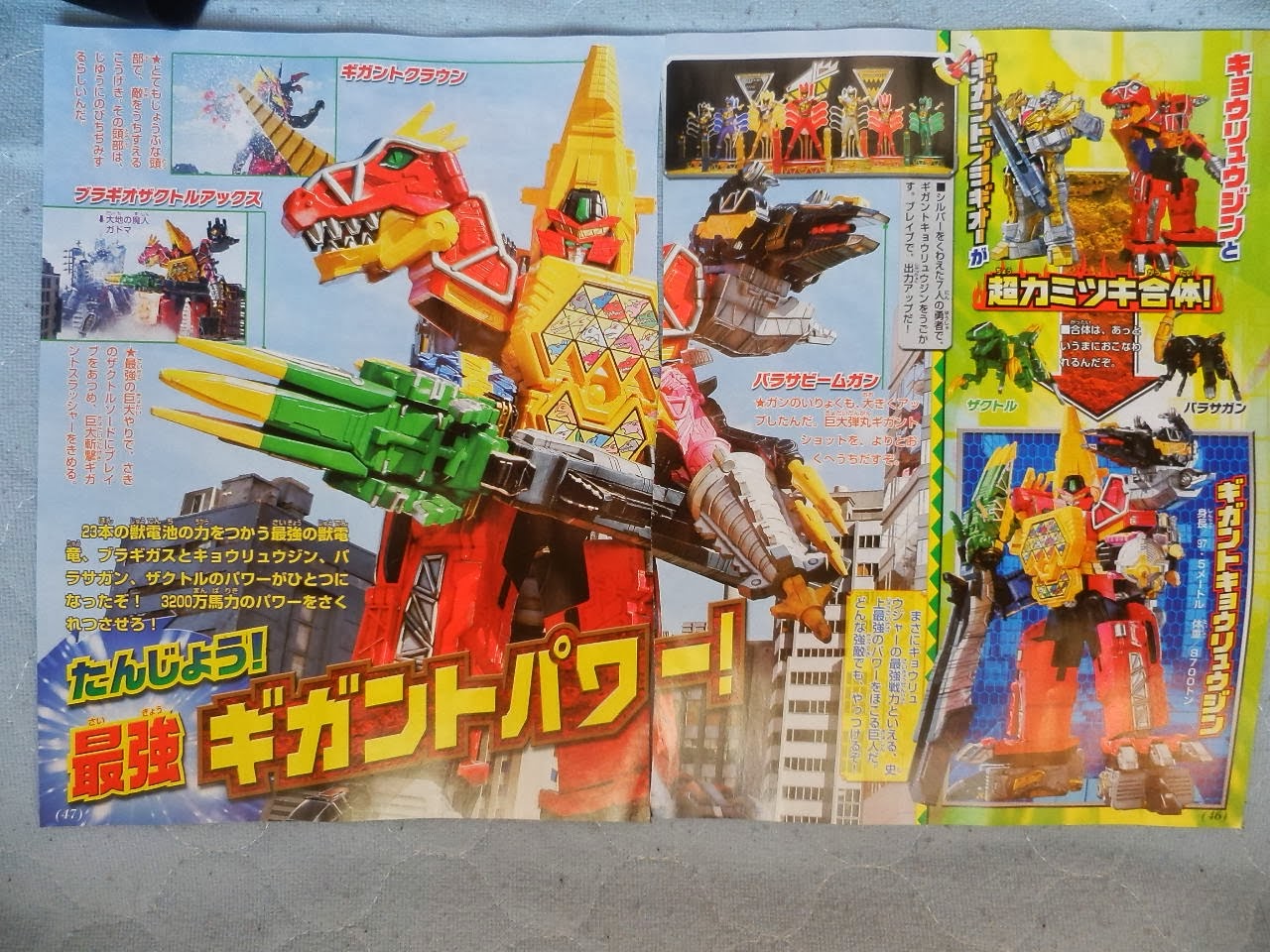 As if Kyoryu Silver's transformation in the preview for episode 36 wasn't enough, the November scans for Zyuden Sentai Kyoryuger show off Torin as Kyoryu Silver as well! And along with this his partner Bragigas and the final mecha combo of the series Gigant Kyoryuzin!