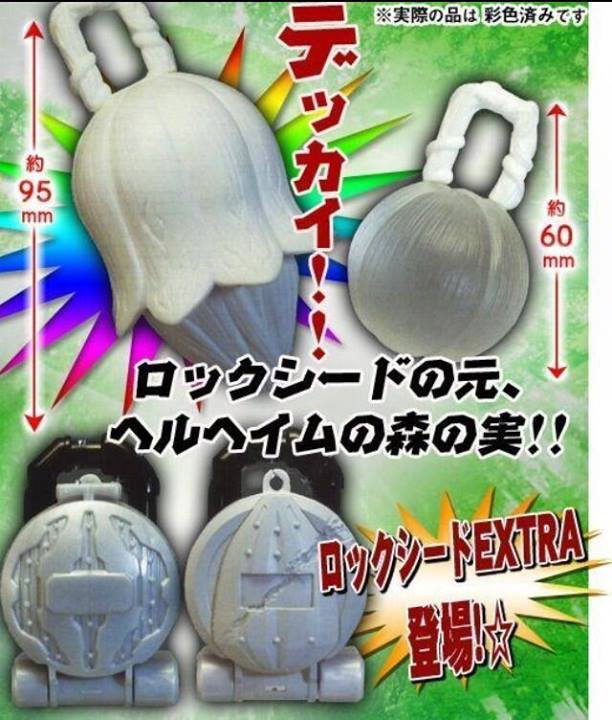 First of all, Bandai will be releasing Lock Seeds in their Premature state in the show, you can see this type of Seed growing all over Helheim Forest, the dimension from which the Invess call home. The other two Lock Seeds however, are the one that contains spoilers. Bandai will be re-releasing the Sunflower and Watermelon Lock Seeds. The version of Sunflower is the battle damaged version from episode one and Watermelon is the drained version from episode eight. The Lock Seeds will be released in March 2014. SOURCE: Henshinjustice Last edited by Kiryu; 12-03-2013 at 07:22 PM.. |