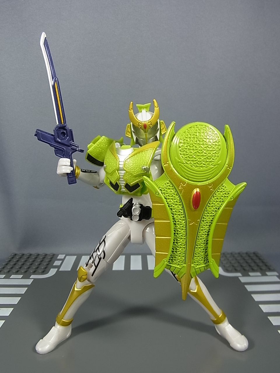 Oh hey,I just noticed that the way the packaging art is down is kind of similar to the old "henshin" series that was done for some of the earlier Heisei series. Neat.