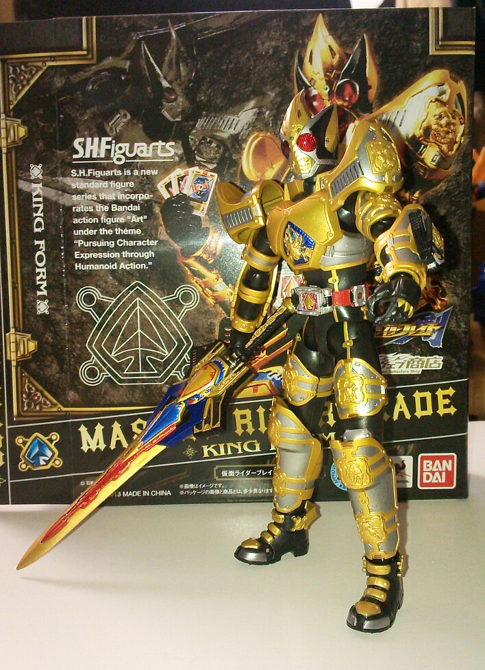 Thanks to a combination of some anonymous 2chan users and Cybergundam we have our first in hand looks at S.H. Figuarts Kamen Rider Blade King Form! Blade's final form is a Tamashii Web Exclusive just released this month and just beginning to ship to domestic buyers and middlemen services. If you've been following our weekly Let's Watch Wednesdays segment with Kamen Rider Blade then you've recently seen King Form for the first time. And if you're caught up to this weeks selection of episodes then you know the terrible consequences of it's power as well. Please feel free to join in on our weekly discussion thread.