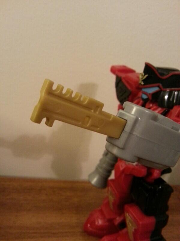They are suits of megazord armor with small cheap 4" figures inside that can be replaced. I was able to put other 4" figures inside, like Megaforce Red. They are zordbuilder compatible. The arms and legs are connected via zordbuilder and there is also a zordbuilder port on the back. The hat detaches from each to attach to the head of the Legendary Megazord. Each one has a fully functional Ranger Key on their left arm that can be used in the cycles, Legendary Megazord and Legendary Morpher. The Legendary Megazord Zord Armor Ranger's key can be inserted to say Super Megaforce in the Morpher. The Gosei Great Zord Armor Ranger's key can be inserted to say Megaforce in the Morpher. No Megaforce keys have been released aside from this. |