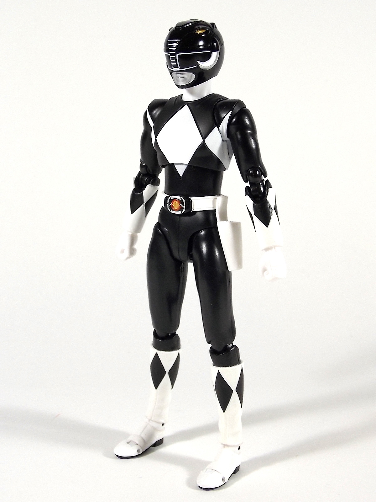 Today we're taking a look at S.H. Figuarts Mammoth Ranger from Kyoryu Sentai Zyuranger! Mammoth Ranger was recently released as Tamashii Web Exclusive, as such it features the newer windowless box style. Otherwise the packaging is pretty nice but you're here for the figure! Mammoth Ranger is of course the same basic body as the other Zyurangers with a head remold. Something about the black on white color scheme makes Goushi look a lot more polished than the 4 previous releases. The black paint applications aren't quite perfect but the figure still looks great. Definitely a great representation for Zyuranger and MMPR fans. The first thing you'll notice is Mammoth Ranger includes a ton of accessories, half of which aren't his! He comes with extra versions of Tyranno Ranger's Ryugekiken and Tricera Ranger's Tricera Lances. Both of these accessories are remolds of those included with the rangers themselves, these remolded versions are capable of combining to form the Howling Cannon! Though all of the components have not been released yet. The upcoming Tiger Ranger will include the appropriate Mammoth Breaker to form the cannon. On that topic the Mammoth Breaker included with Mammoth Ranger cannot transform from axe to gun form. The included Breaker is molded only as the axe. So even though I've pictured the axe being held like the gun, it's not actually accurate. The proper axe comes with Tiger Ranger. Also included with Mammoth is the pre-requisite Ranger Stick and the combined Thunder Slinger as well several extra sets of hands. I also thought it would be cool to have some fun with this one. A while back I cut up a Bouken Red Accel Tector vinyl so I could make ztector armor for SHF Bouken Red. Turns out it makes for a pretty good Once A Ranger Defender Vest Black Ranger too