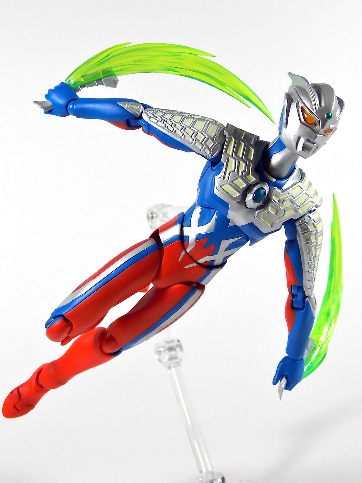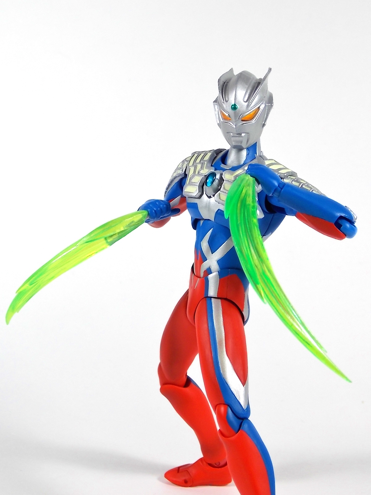 This time I'm looking at Ultra-Act Zero V2. This renewal is a very welcome addition to the Ultra-Act line. Anyone familiar with the line knows that the original release of Ultraman Zero isn't the best of Ultra-Acts. The figure suffers from quite a few of the design flaws that other earlier releases in the line do. Articulation & general QC being the most common problems. This V2 rectifies nearly all those problems. As you can Zero V2 is presented in what's become the new standard for Ultra-Act packaging in the last two years. For starters the V2 includes a TON of a new accessories. It's a vast improvement on selection over the original release. Not only does Zero include 6 sets of hands, but also 2 individual Zero Sluggers, plus an extra version of each attached to beam effects as well as a combined form of the two as the Zero Twin Sword. The alternate chest plate to replicate the Zero Twin Shoot is also includde as well as alternate shoulder panels, a beam effect, and a massive double beam effect to be used in conjunction with a second figure. An alternate head and a back plug for Tamashii Stages are also included. This guy is loaded down. If this improvement over the original wasn't enough to entice you, it's also a massive improvement in the articulation department. As you can see the figure makes full use of the new body type to properly able to achieve the characters signature moves. Ultra-Act Zero V2 is an absolutely excellent renewal of a figure that was underwhelming previously. It's a fantastic compliment piece to any of your other Ultra-Acts, though unfortunately the downside is that it makes the flaws of previous release more apparent. Such as the height difference between Zero V2 and Glenfire.