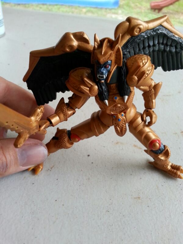 Ok so I used to be a pretty well known GI Joe customizer a few years ago and had a TON of spare parts before I retired from Joes. Anyways I managed to find a 4 inch Rita Repulsa at anantiques store for about $3 or so and decided to have fun with it. Added swivel wrists and new head. Also fixed up that super crappy wand of hers and gave her an extra collar piece. BIG IMPROVEMENT in my book!!! As for Goldar I got a junker that was missing the wings and sword. Man what a turd figure that was with practically no articulation except the feet. Well I got to working pretty hard on him and managed to add swivels for his elbows and full bending joints from an old Joe figure (pretty easy actually), added a new ball joint for the head for better range of motion and he now has knees as well as outward and back and forth joints for the hips which I had to resculpt. A LOT of work went into him. Added the wings and sword from the old original Goldar to complete his look. He's a tad back heavy now so I may create afigure stand for him for better support. The last figure was an original creation made from a Samurai Ranger and a few parts from my fodder bin. Haven't thought of a name for him yet. These were super fun to make and I may decide to sell or trade them later for the original articulated 2010 Rangers or Lord Zedd.