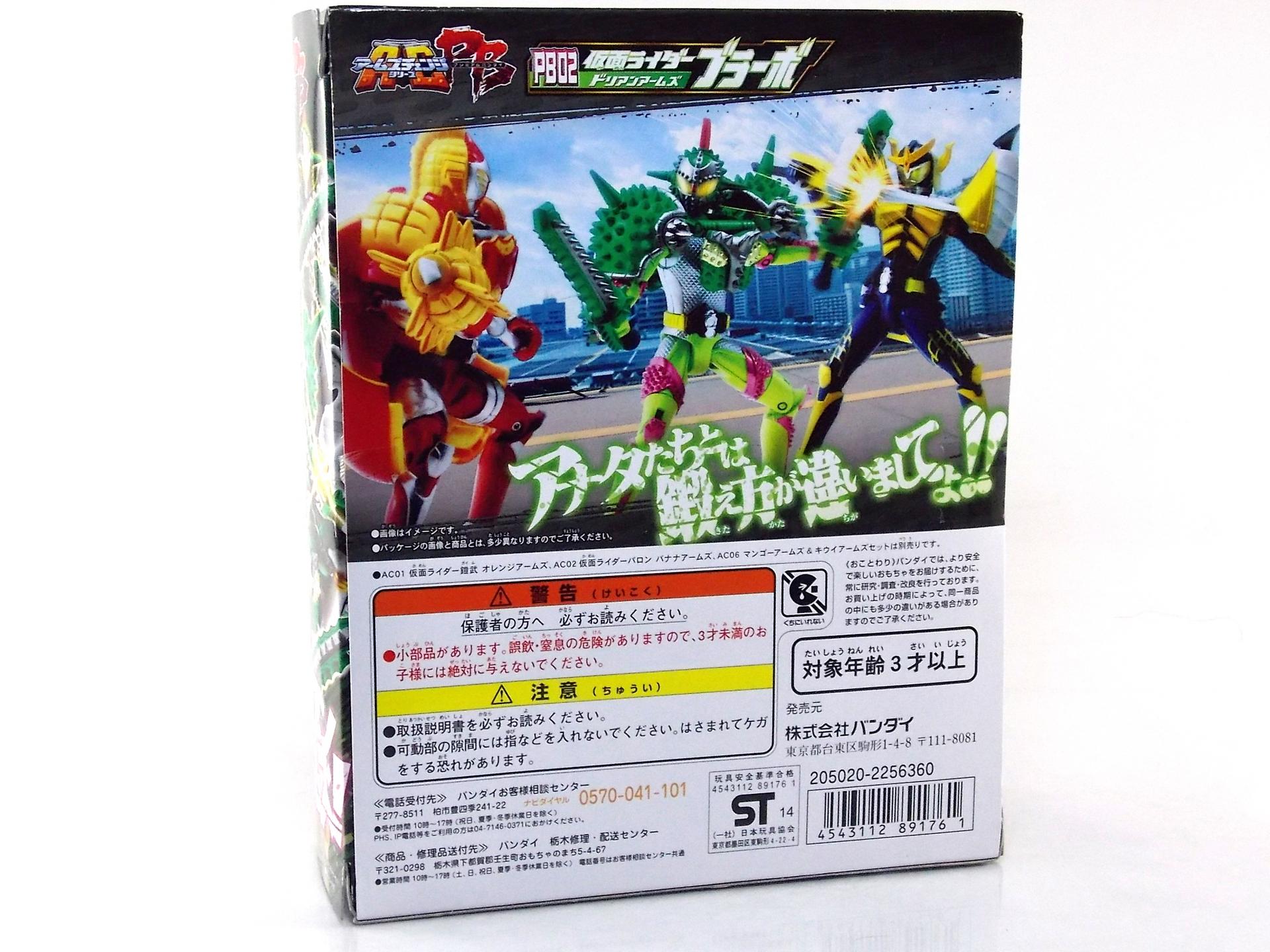 Misteeerrrrrr Dangeroussssss!! The Arms Change line of Kamen Rider Gaim continues with another Premium Bandai Exclusive release! Last time we checked out the first premium rider, Bujin Gaim, but today we want to take a look at the most peculiar Armored Rider of them all. ACPB02 Kamen Rider Bravo! Oren Pierre Alfonzo, the awesome ex-patriated, ex-military, re-patriated, pastry chef/mercenary of doom. He's certainly one of if not the most memorable characters in Kamen Rider Gaim. So it's only fitting this his rider form, Kamen Rider Bravo, is also one of the most outlandish and memorable designs in the series. Let's dive in to see how the toy holds up compared to it's on screen counterpart. Before you check out this gallery be sure to hit our front page and check out our good friend Baltmatrix's video review of Bravo! Post #2 features an additional 40 images including every alternate Arms Change for Bravo! Packaging Continuing the trend that started with Bujin Gaim, Kamen Rider Bravo also comes in a windowless box that's become the standard of many Tamashii Web & Premium Bandai exclusives recently. Aside from showcasing some alternate Arms Changes and a battle scene on the back, there really isn't much more to say about the box. It's Bravo, so it's a winner by default. Main Figure Though this figures body has had quite a few cosmetic changes compared to his mold mates, at a basic level you can still see where Bravo inherits much of his design. Just like in the series itself the bottom line is that Bravo is a repaint/remold of the Baron/Gridon/Duke body. Sharing much of their same standard molding, what sets Bravo apart is his garishly awesome color scheme, I mean it's like Transformers G2 awesome. And I mean that in a completely non-sarcastic way. Seriously I love it. Looking closer we also see that Bravo's wrist guards, shins, knee pads, hip armor, elbow pads, and head all feature brand new unique molding to set them apart from other uses of this mold. Covered in the unique Durian "spikes" Bravo gives the impression of being far more detailed than other figures in the line. This figure is so far the first to really embrace it's premium nature. And I couldn't be more in love with it. The head is especially striking as a lot of care went into making sure that head sculpt was accurate. Right down to the natural "scar" across the left eye. In this pre-Arms state we can already see Bravo is worth the price of admission. Arms/Accessories The main event so to speak of this figure is the glorious brand new Durian Arms! This set of Arms is an entirely new mold/design, but then it had to be. Early into Gaim's run speculation ran wild that this figure would simply never exist because of how these Arms cheated with a CG transformation. While the toy may not be able to do some of the CG magic the show can, it more than faithfully represents Bravo's trademark armor. When attached and folded out we see Kamen Rider Bravo Durian Arms in all his glory. If you couldn't tell by now Bravo's suit is based on a Roman Centurion, right down to the gnarly mohawk down the middle of his helmet. The insert piece of his helmet has a nice golden paint application that really helps it shine through his eyes. The scar molding allows a little more extra light into the visor that other figures don't get the advantage of. But it really helps bring this figure to life more. As you can see the Durian Arms are rather big. Perhaps inaccurately so, but not disappointingly. We all knew from the get go when Arms Change was a retail line that it would make compromises, and even now that the line is being finished up as exclusives, I still think it's reasonable to allow for some small inconsistencies from screen to toy. Needless to say whether the Arms are too big or not they look amazing on Bravo. I will say that they do hinder the upward motions of the arms to a degree so it can be just a little difficult to manage some poses. Now also included with Bravo are this forms signature weapons, a pair of Duri Noko. This pair of saw like weapons has been wonderfully sculpted and exquisitely painted, they are absolutely awesome. And they have some surprising heft to them. Unlike a lot of AC weapons they also have knuckle guards. So when you put them in a riders hands the guards help stabilize them so they hold much more tightly. Some other AC riders would have greatly benefited from their weapons having a design like this. Looking at you Ryugen. In any case this is a fantastic looking form, and when you get to swapping around these arms to other figures you're going to discover some beautiful combos. Bravo looks decent enough in most arms actually, though his colors will clash with nearly anything. Durian Arms however looks great on a ton of riders. Of particular note is the absolute match made in heaven combo of Ryugen Durian Arms. Seriously look at that image, it's like it was made for Ryugen. But it also looks fantastic on Zangetsu, Gaim, and even Kiwami Gaim. Final Thoughts The first release in this premium line, Bujin Gaim, was an admirable start. As a simple repaint it tested the waters to see how much interest people would have. Clearly that paid off as we got this wonderful brand new figure as a second release. ACPB02 Kamen Rider Bravo is an excellent figure. It's hands down my personal favorite Arms Change figure released thus far. It has beautiful crisp paint apps, a plethora of new molding, and a ton of personality to it. I'm in love.
