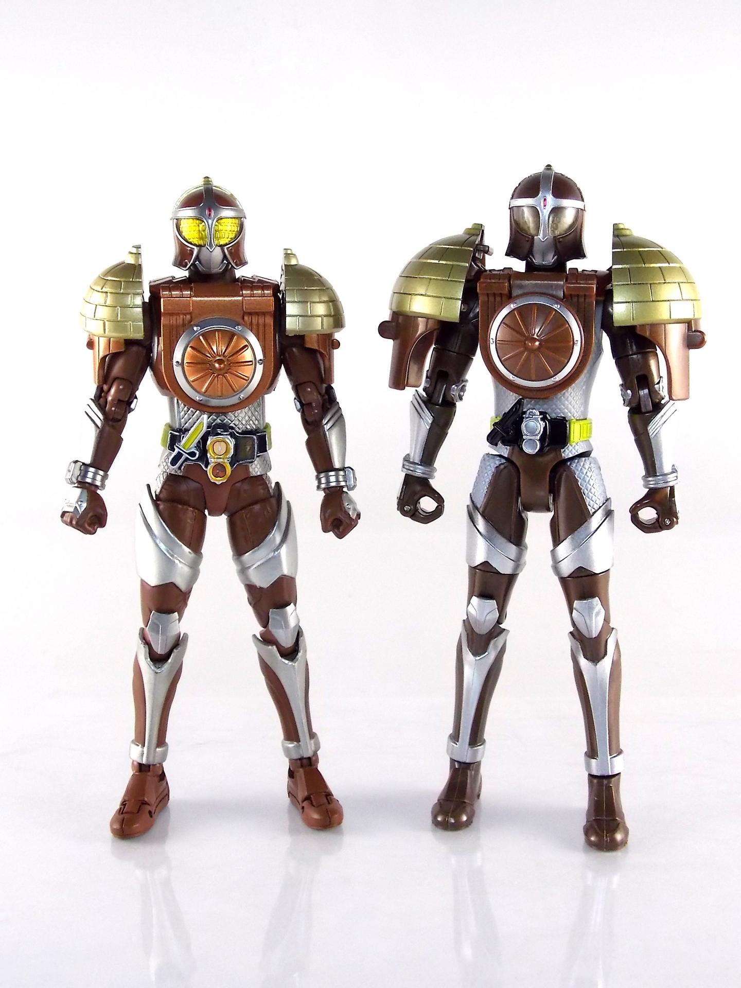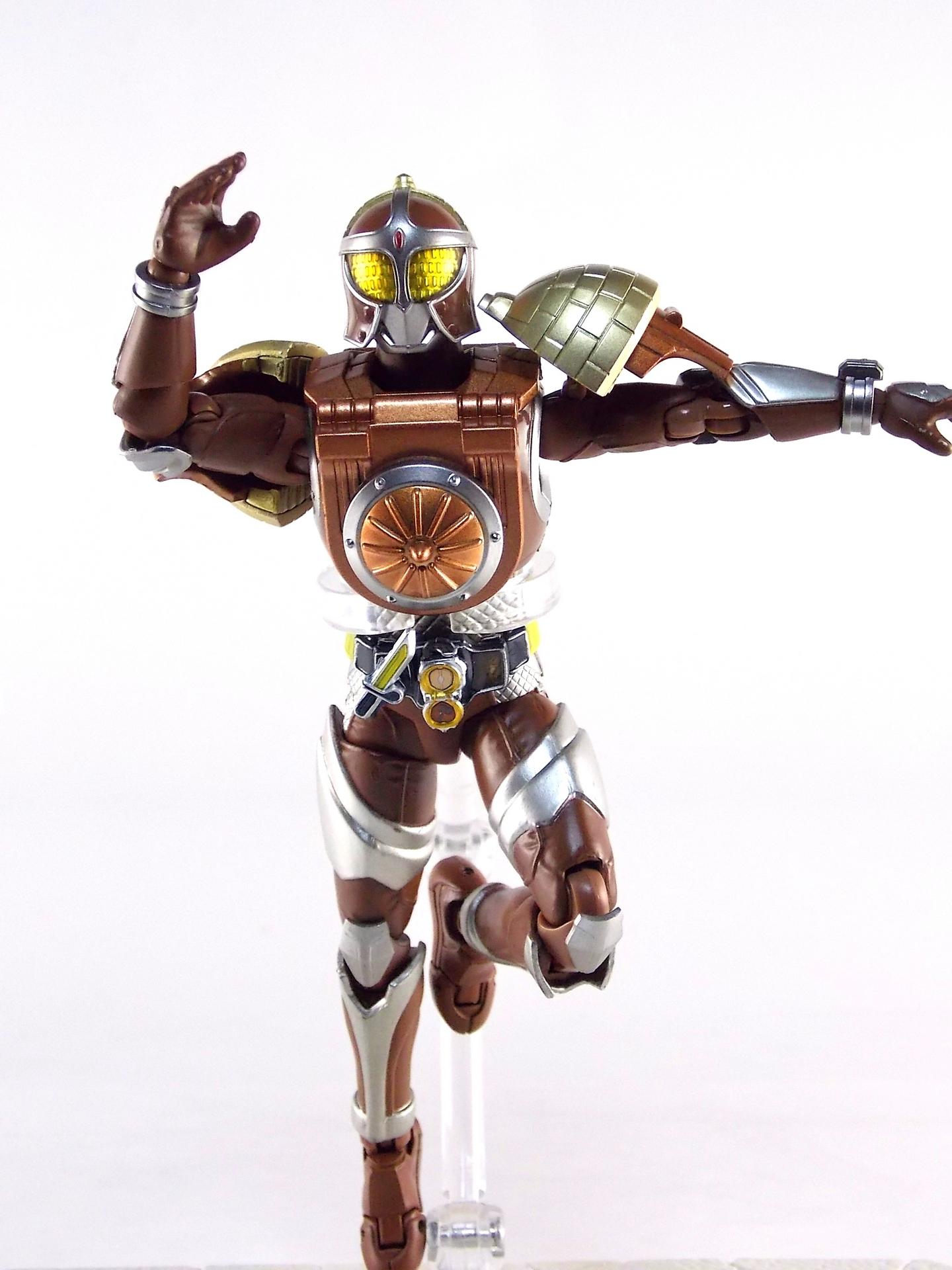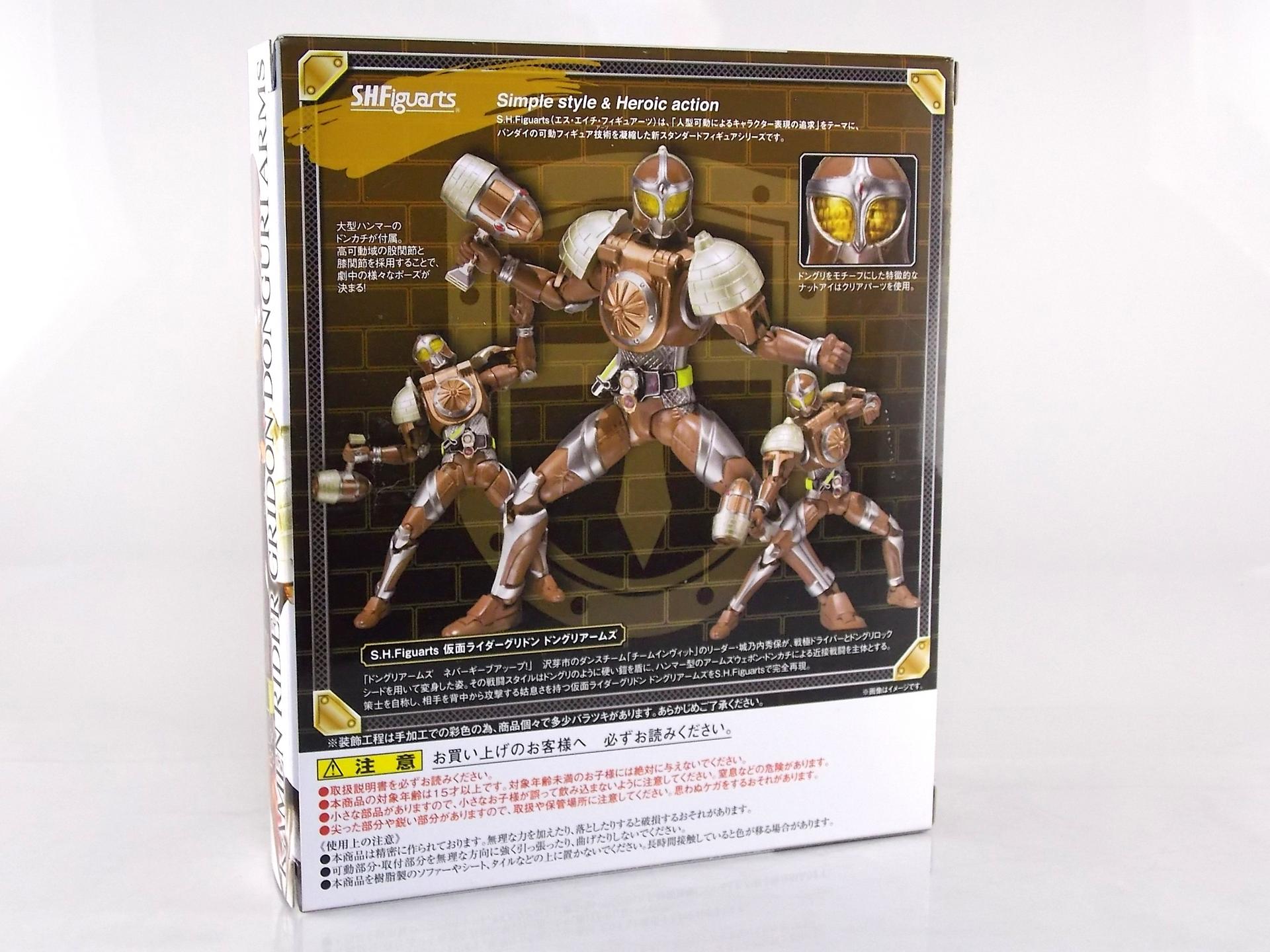 Our Gaim celebration continues today with a few posts dedicated to the Nut Bros of Kamen Rider Gaim. And this one's dedicated to S.H. Figuarts Kamen Rider Gridon! **Note: Post #2 contains additional images. Packaging As I've said in many reviews recently, Tamashii Web Exclusives & Premium Bandai Exclusives tend to all come in windowless boxes now and Gridon is no different. Not much to say about this since it's more or less becoming standard. But it is a pretty damn nice looking box this go around. Main Figure As with the previous Gaim Figuarts releases, S.H. Figuarts Gridon is gorgeous at even a basic level. As figures from the same lines generally do, these figures share some design elements at a basic level as well. Though this isn't nearly as apparent as it was for say the Arms Change line of figures. Though as with the Arms Change, much of the basic sculpt for Gridon comes from Baron. Also much like Baron, Gridon has some pretty big shoulder pads to work with. Though here they function much better. The cutouts on the underside of them allow his arms a bit more freedom and flexibility compared to Barons. And because they aren't as cumbersome and large they angle up much more. From there on Gridon has a pretty fantastic range of movement much like Gaim's. Though he doesn't have a Muso Saber on his hip like Gaim to hinder anything so really it's almost like this figure has an even better range. This excellent freedom of movement truly helps capture the funny spirit of Gridon as he can really pull off some great poses. It should also be mentioned that the colors on Gridon are also spot on. In particular the visor on his helmet is really well done. Much more so than Arms Changes, the Figuarts of these characters really capture the inset visor details. Gridon's almost looks like a honey comb it's so nicely sculpted and painted. Also the Donguri Lock Seed on his belt is removable like previous figures in this line and it along with the Gridon rider indicator face plate are magnificently detailed for things at this scale. Accessories As is often the case with Web Exclusives, Gridon is a bit lite on the accessories. He comes with: 2- pairs of alternate hands. Not a wide variety here but enough to get the gist of some of Gridon's more comedic moments 1- Closed Donguri Lock Seed. I always apprecaite these closed Locks being included but I have to say I never do much with them except take a few in hand shots. For me at least it's just one more tiny accessory to lose. 1- Donkachi hammer type weapon. This thing is gorgeous. Like all the SHF rider weapons released thus far the Donkachi looks perfect. Compared to the Donkachi included with AC Gridon this one blows it out of the water. All the details are there, even down the grip of the hammer. With this Gridon is ready to whack some moles! And Invess. So although the selection seems sparse, nothing really comes to mind that this figure should have included that it doesn't have. Maybe an alternate silver belt strap? But that's more of a nit pick non-essential. It's got the essentials at least, and for me that's good enough. Final Thoughts In closing, it's wonderful to have another Gaim rider to add to the collection. As the Arms Change line progressed we were all enamored with the ingenuity put into those figures. Now we marvel at the the intricate detail of their SHF counterparts. Initial images of this figure had me skeptical of it, but in hand it really is great. And it's nice to have another brown rider, there are very few of them and this color really works. Each line, AC & SHF, has it's fans and critics but I've gotta say that in my book S.H. Figuarts Kamen Rider Gridon Donguri Arms is another winner.