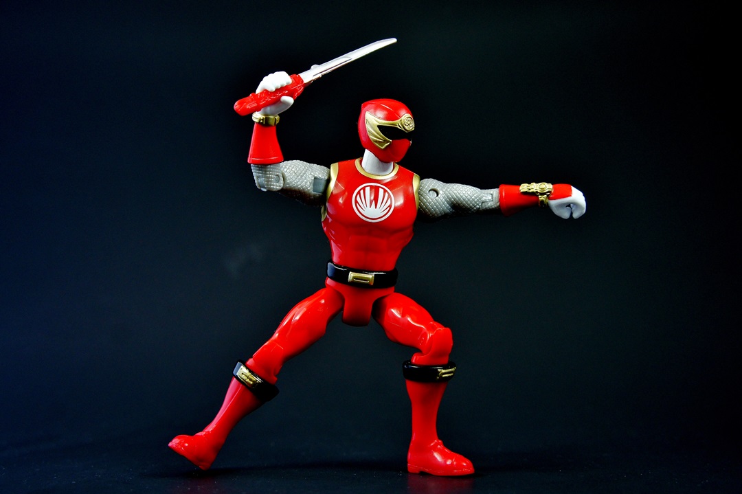 Continuing the look at the Power Rangers Super Megaforce 5" figures we bring you the Red Ranger from one of the more debated series in the fandom in terms of "good season" or "bad season" - the Red Wind Ranger from Power Rangers Ninja Storm! I've been pleasantly surprised thus far with the figures I've looked at in the 5" figure line. As a S.H. Figuarts collector it isn't easy to go back to these more basic figures and not draw criticisms but the line in general has impressed me with great sculpting on both the figures and the accessories. And that's why I can't help but feel disappointed with the Red Wind Ranger figure. The figure itself is exactly the same as the other 5" figures in terms of the body - the only changes being the obvious changes that you see from every figure (boots, gloves, belts, etc.). There's no real need to dive in to that except I will say that when compared to the S.H. Figuart of the Red Wind Ranger the muscular, arched back feels WAY out of place, more so than the other figures. As for accessories ... very disappointed. The only accessory this figure comes with is the Ninja Sword, and the sculpting detail is minor at best. The wind morpher on his wrist has some nice detail, as does the crest on the helmet, but that's not enough to make up for the fact he comes with only a sword. The good news is the sword is small enough that you won't face too much bendy plastic in your future - but don't misinterpret what I'm saying because the sword is still made of bendy soft plastic. The biggest mistake I did was putting him next to his S.H. Figuart version and then literally quitting the photo shoot as I lost all desire to continue shooting or to have them doing fun poses because, well, the 5" figures can't really do fun poses (you have to get REALLY creative). He can't grab his sword while it's attached to his back like in the show, and a super bulky muscular ninja in cool flying kick poses just didn't feel right (or look right for that matter). So let's get this over with. THE GOOD!