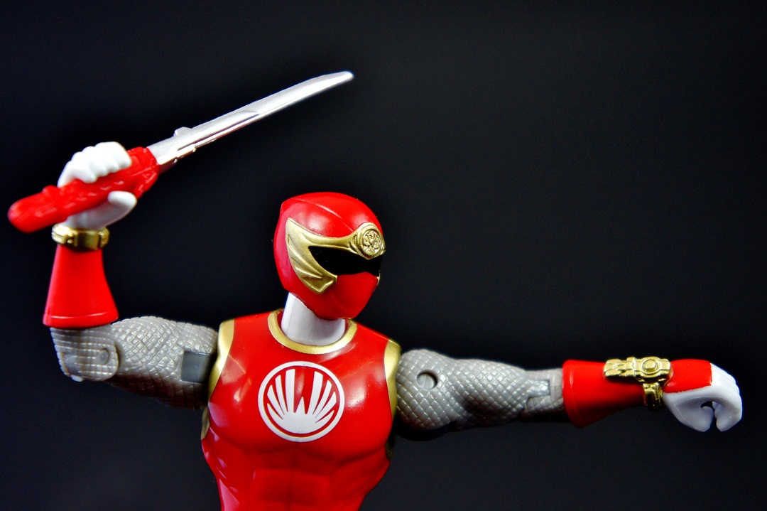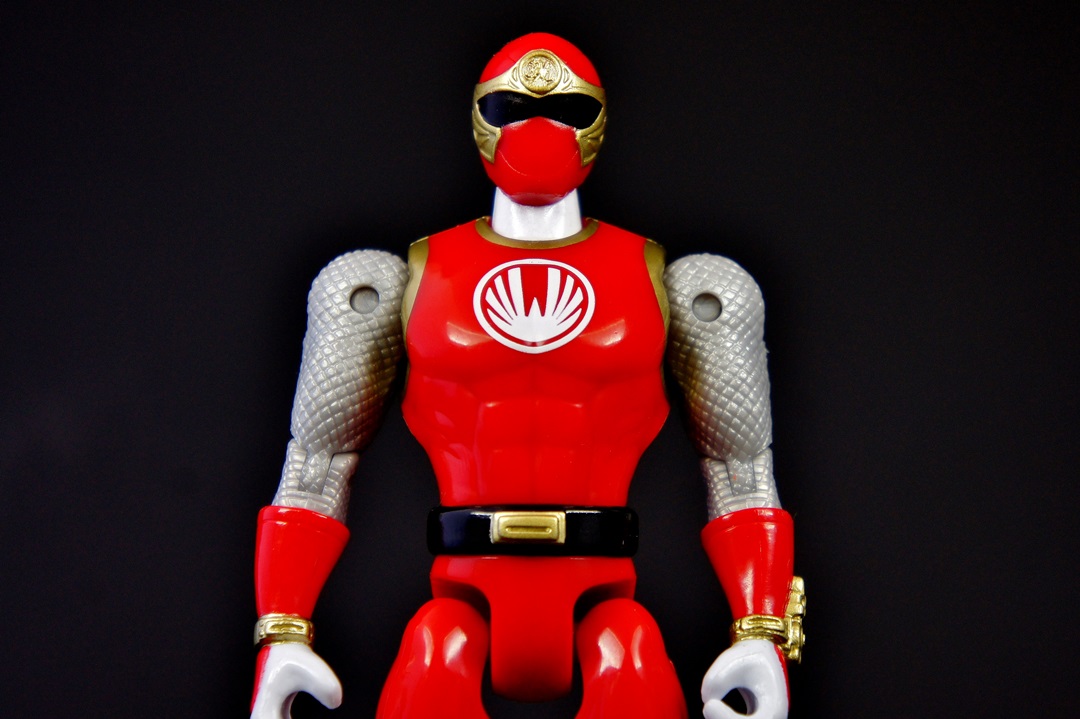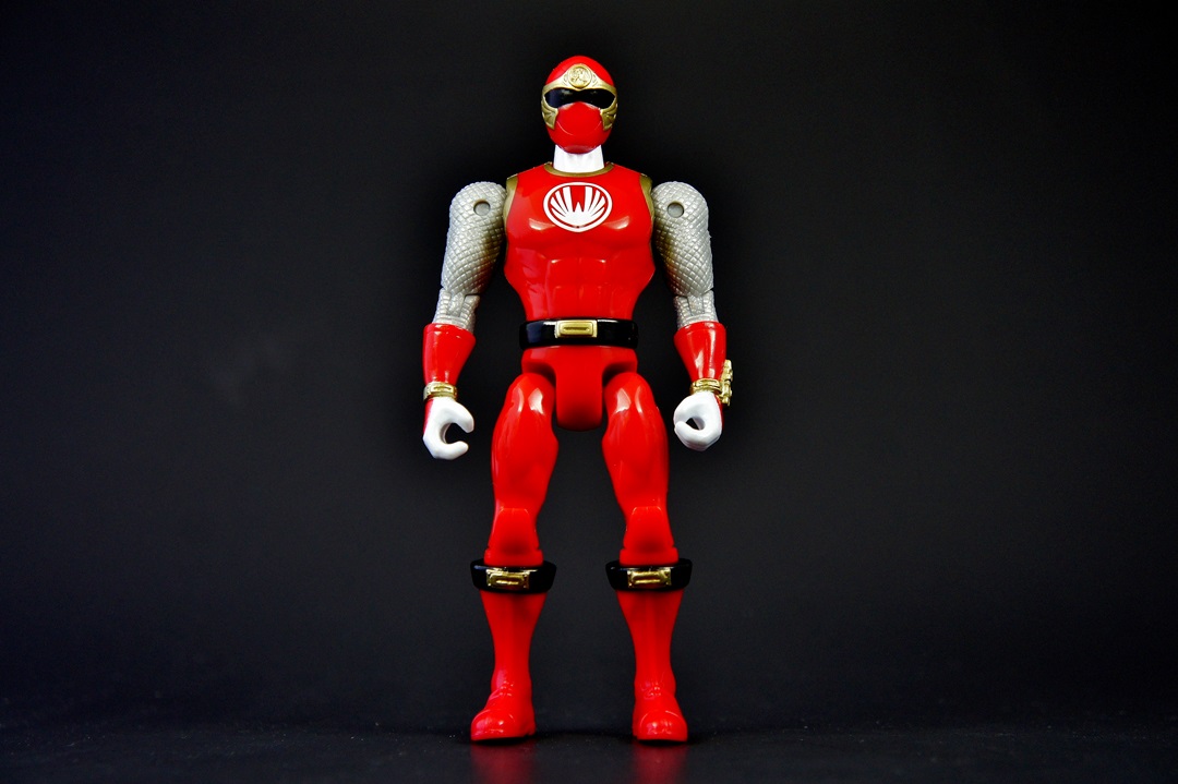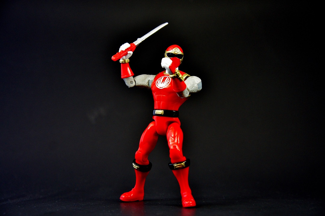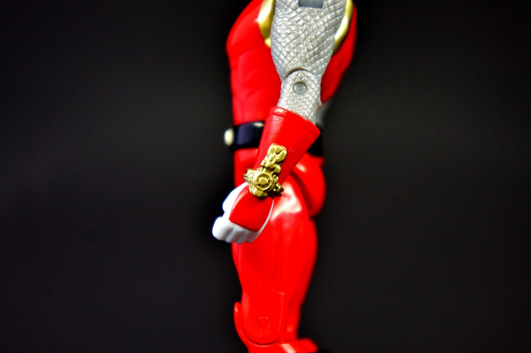 Continuing the look at the Power Rangers Super Megaforce 5" figures we bring you the Red Ranger from one of the more debated series in the fandom in terms of "good season" or "bad season" - the Red Wind Ranger from Power Rangers Ninja Storm! I've been pleasantly surprised thus far with the figures I've looked at in the 5" figure line. As a S.H. Figuarts collector it isn't easy to go back to these more basic figures and not draw criticisms but the line in general has impressed me with great sculpting on both the figures and the accessories. And that's why I can't help but feel disappointed with the Red Wind Ranger figure. The figure itself is exactly the same as the other 5" figures in terms of the body - the only changes being the obvious changes that you see from every figure (boots, gloves, belts, etc.). There's no real need to dive in to that except I will say that when compared to the S.H. Figuart of the Red Wind Ranger the muscular, arched back feels WAY out of place, more so than the other figures. As for accessories ... very disappointed. The only accessory this figure comes with is the Ninja Sword, and the sculpting detail is minor at best. The wind morpher on his wrist has some nice detail, as does the crest on the helmet, but that's not enough to make up for the fact he comes with only a sword. The good news is the sword is small enough that you won't face too much bendy plastic in your future - but don't misinterpret what I'm saying because the sword is still made of bendy soft plastic. The biggest mistake I did was putting him next to his S.H. Figuart version and then literally quitting the photo shoot as I lost all desire to continue shooting or to have them doing fun poses because, well, the 5" figures can't really do fun poses (you have to get REALLY creative). He can't grab his sword while it's attached to his back like in the show, and a super bulky muscular ninja in cool flying kick poses just didn't feel right (or look right for that matter). So let's get this over with. THE GOOD!